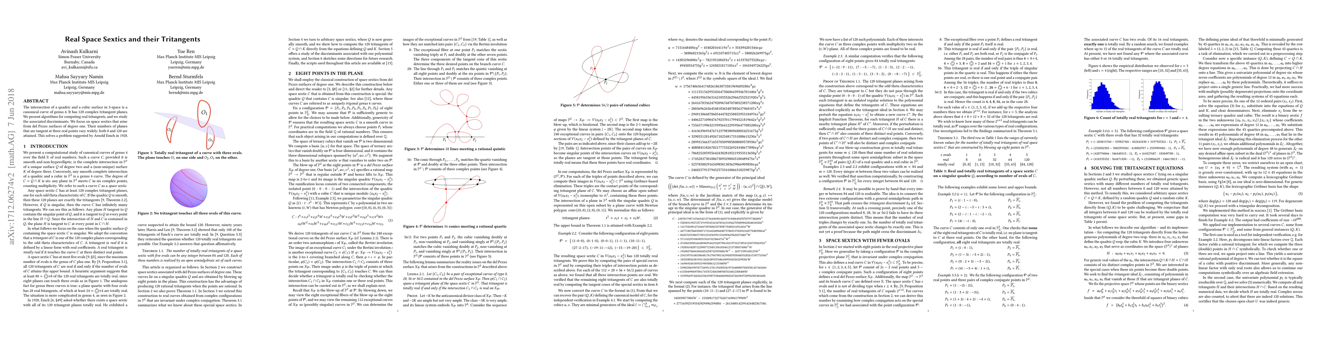 The intersection of a quadric and a cubic surface in 3-space is a canonical curve of genus 4. It has 120 complex tritangent planes. We present algorithms for computing real tritangents, and we study the associated discriminants. We focus on space sextics that arise from del Pezzo surfaces of degree one. Their numbers of planes that are tangent at three real points vary widely; both 0 and 120 are attained. This solves a problem suggested by Arnold Emch in 1928.