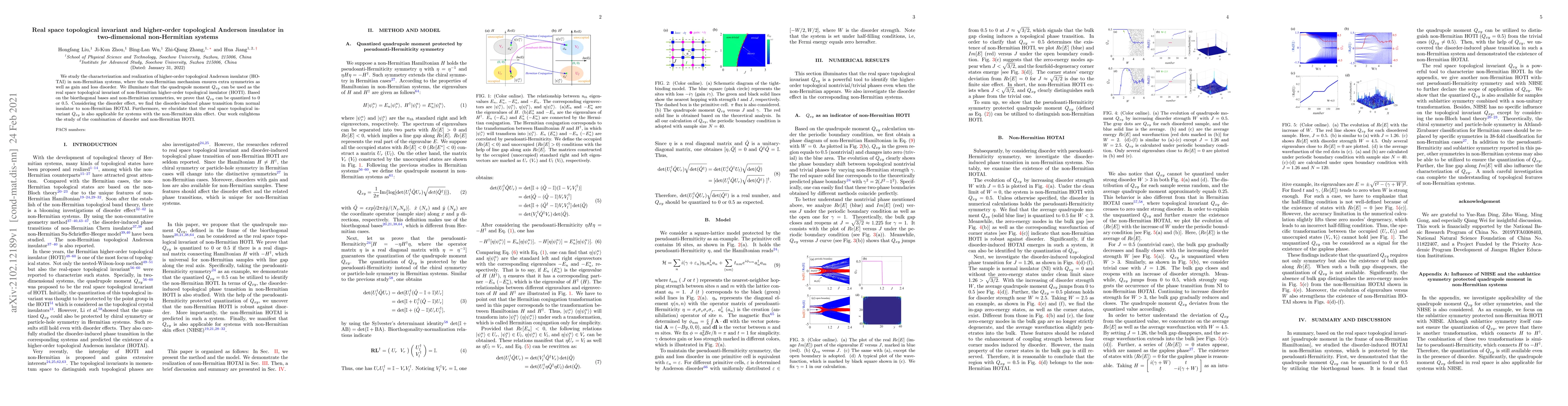 This paper investigates the realization of higher-order topological Anderson insulators in two-dimensional non-Hermitian systems, identifying the quadrupole moment $Q_{xy}$ as a real space topological invariant. It demonstrates that $Q_{xy}$ can be quantized and discusses the phase transition from normal insulator to non-Hermitian HOTAI under disorder.