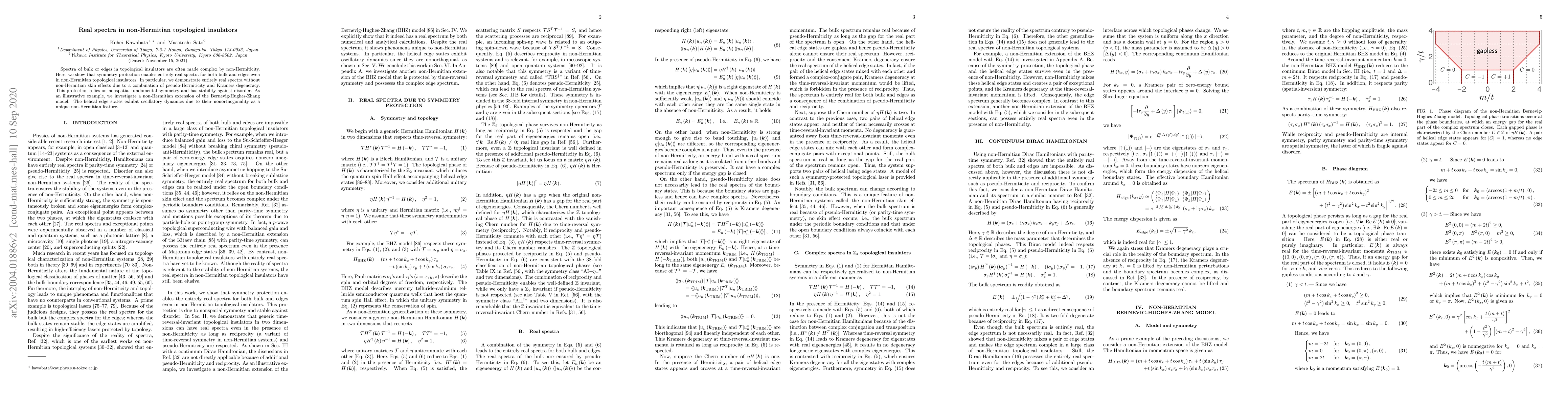 Summary: This study reveals that symmetry protection can enable entirely real spectra in non-Hermitian topological insulators, despite their often complex nature. The research demonstrates real spectra through pseudo-Hermiticity and Kramers degeneracy, showing stability against disorder and investigating a non-Hermitian extension of the Bernevig-Hughes-Zhang model.