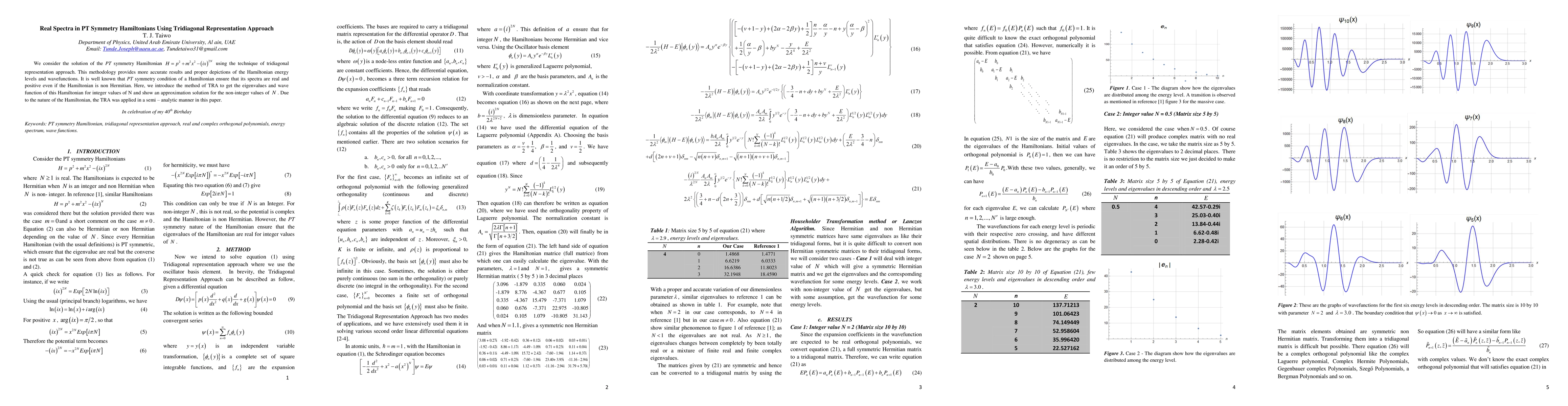 The research distinguishes itself by applying TRA to PT symmetry Hamiltonians, providing a more accurate representation of energy levels and wavefunctions compared to existing methods.