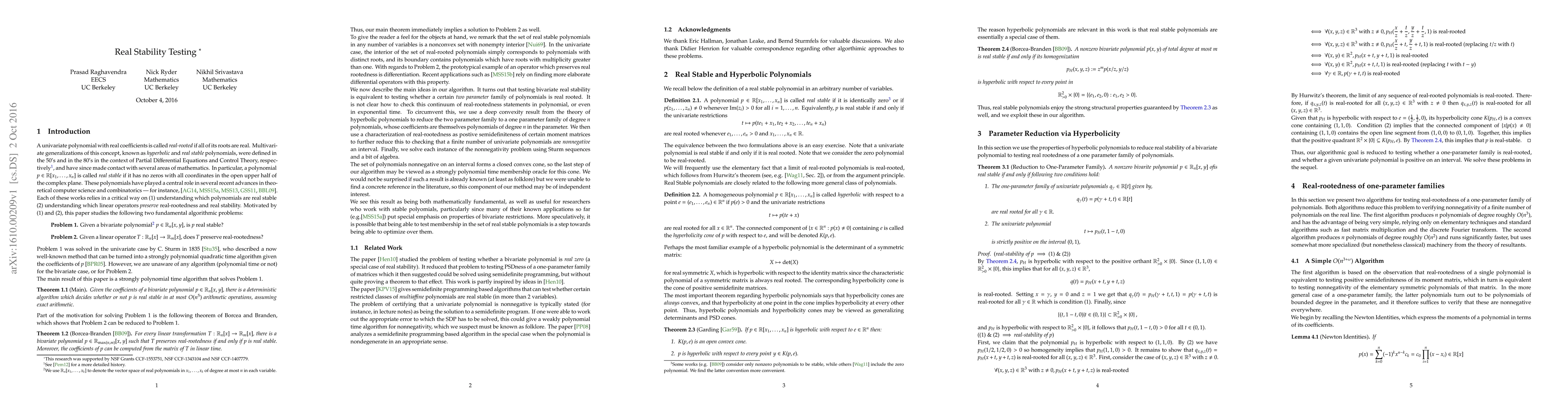 Summary: A strongly polynomial time algorithm is presented to determine if a bivariate polynomial is real stable, leveraging properties of hyperbolic polynomials and reducing the problem to testing nonnegativity of a finite set of polynomials on an interval. This also extends to an algorithm for checking if a linear transformation preserves real-rootedness in univariate polynomials.