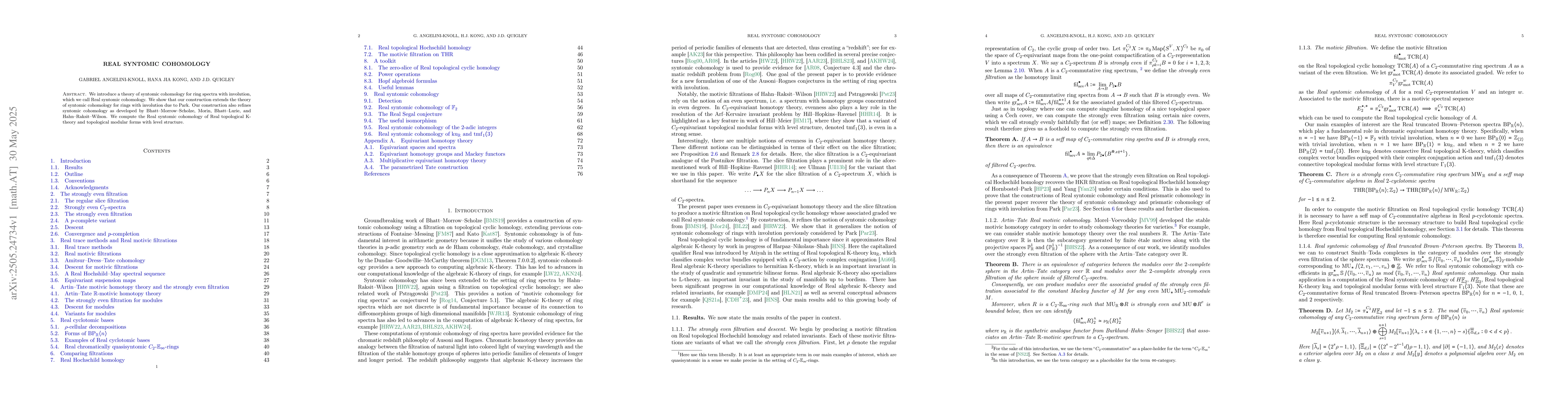 The paper introduces Real syntomic cohomology for ring spectra with involution, extending and refining existing theories by Park, Bhatt--Morrow--Scholze, Morin, Bhatt--Lurie, and Hahn--Raksit--Wilson.