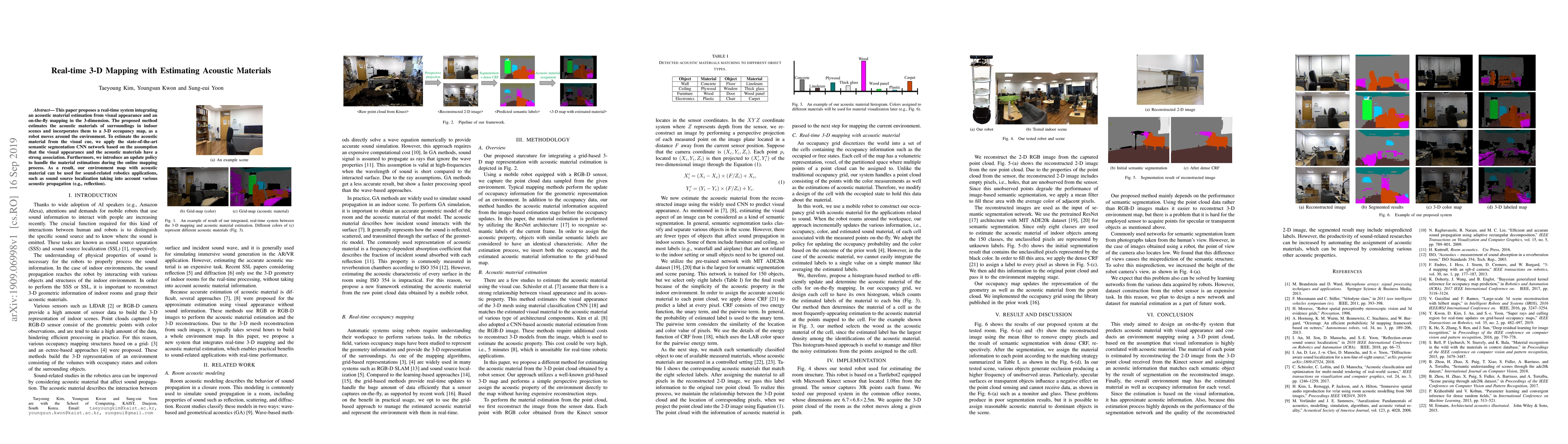 This research introduces a real-time system that creates 3D maps of indoor environments while estimating acoustic materials from visual cues. Utilizing a CNN for semantic segmentation, the method associates visual appearance with acoustic materials, updating these estimations during exploration to aid sound-related robot applications like sound source localization, considering different sound propagation effects.