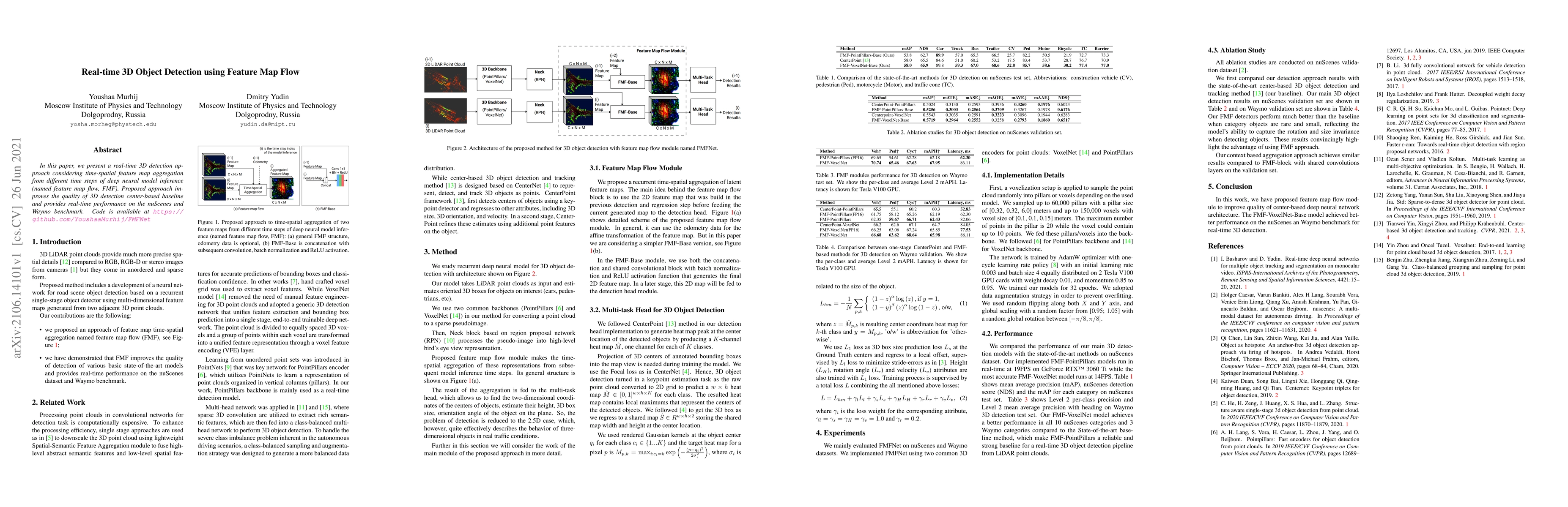 This paper introduces a real-time 3D object detection method using feature map flow (FMF) that aggregates time-spatial features across different inference steps, enhancing detection quality and achieving real-time performance on nuScenes and Waymo benchmarks. The approach is available for review on GitHub.