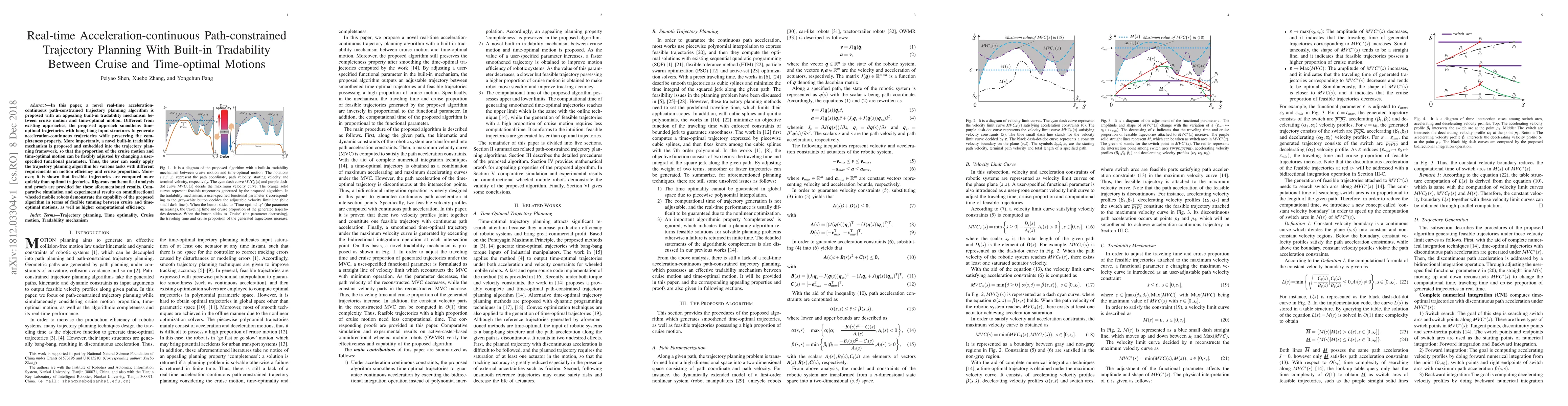 This paper proposes a novel real-time trajectory planning algorithm that generates acceleration-continuous paths while allowing flexible adjustment between cruise and time-optimal motions, enhancing computational efficiency and demonstrating effectiveness through simulations and experiments on mobile robots.