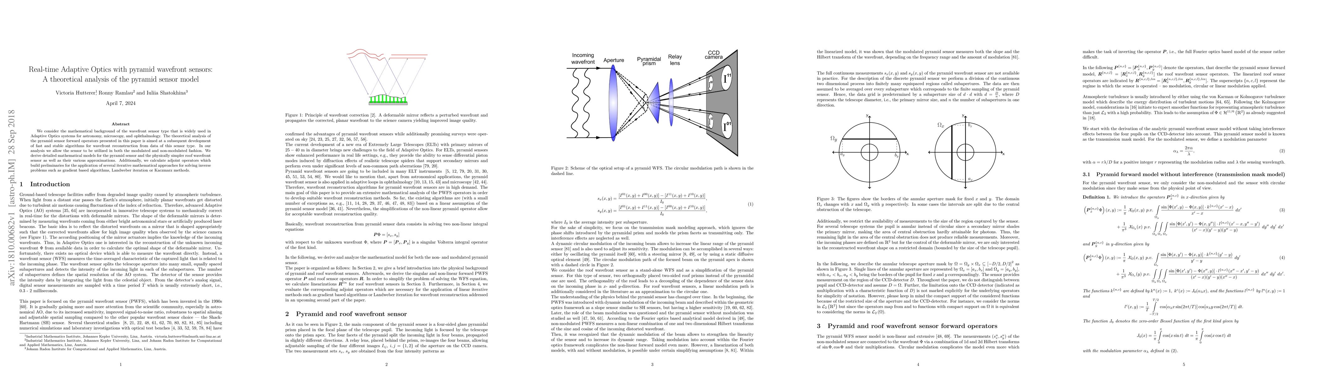 This paper provides a theoretical analysis of pyramid wavefront sensors used in adaptive optics systems, focusing on developing fast and stable algorithms for wavefront reconstruction. It derives detailed mathematical models for pyramid and roof wavefront sensors, including adjoint operators to facilitate iterative methods for solving inverse problems.
