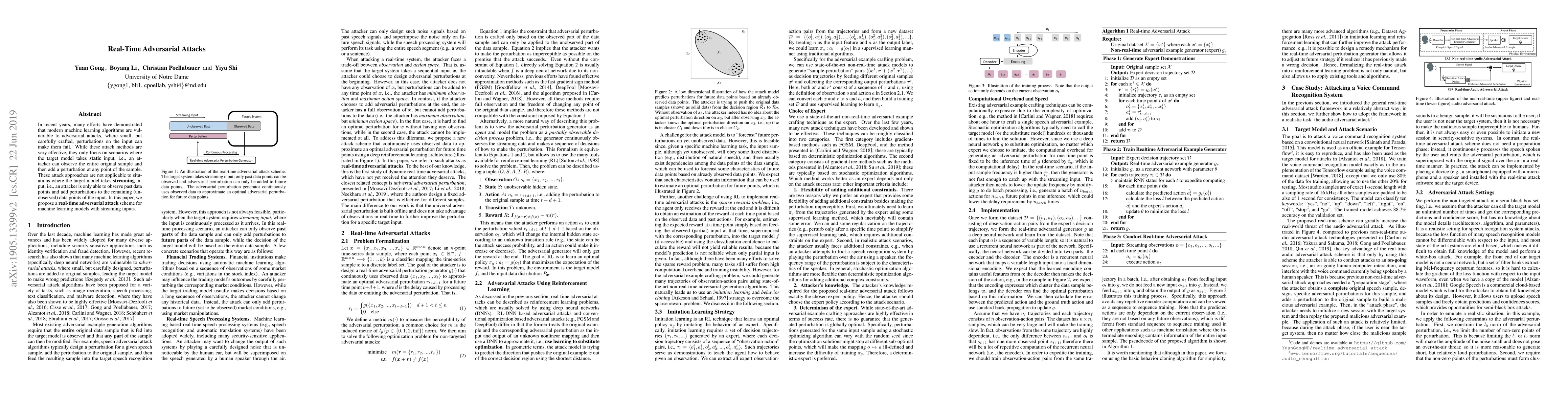 This paper presents a novel real-time adversarial attack method targeting machine learning models that process streaming data, where attackers can only observe past inputs and must craft perturbations for future, unseen data. This approach addresses the limitations of existing static input attack methods.