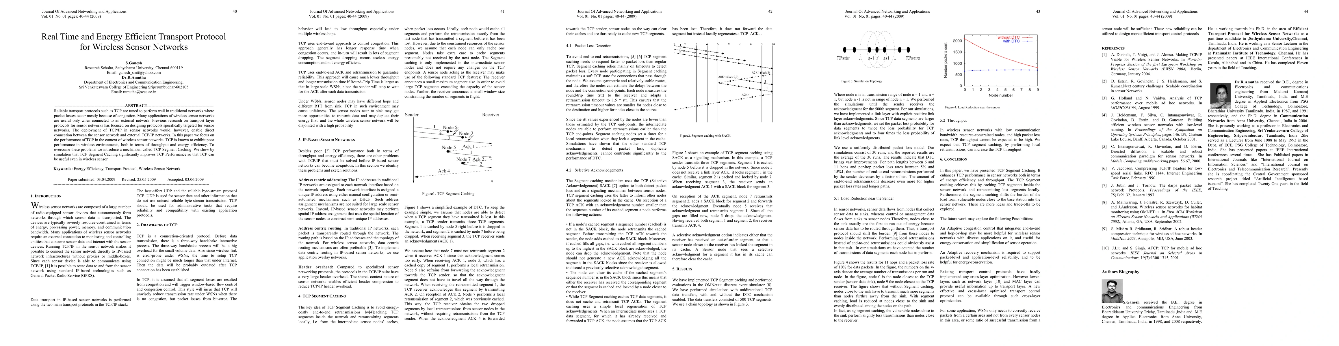 Reliable transport protocols such as TCP are tuned to perform well in traditional networks where packet losses occur mostly because of congestion. Many applications of wireless sensor networks are useful only when connected to an external network. Previous research on transport layer protocols for sensor networks has focused on designing protocols specifically targeted for sensor networks. The deployment of TCP/IP in sensor networks would, however, enable direct connection between the sensor network and external TCP/IP networks. In this paper we focus on the performance of TCP in the context of wireless sensor networks. TCP is known to exhibit poor performance in wireless environments, both in terms of throughput and energy efficiency. To overcome these problems we introduce a mechanism called TCP Segment Caching .We show by simulation that TCP Segment Caching significantly improves TCP Performance so that TCP can be useful e en in wireless sensor