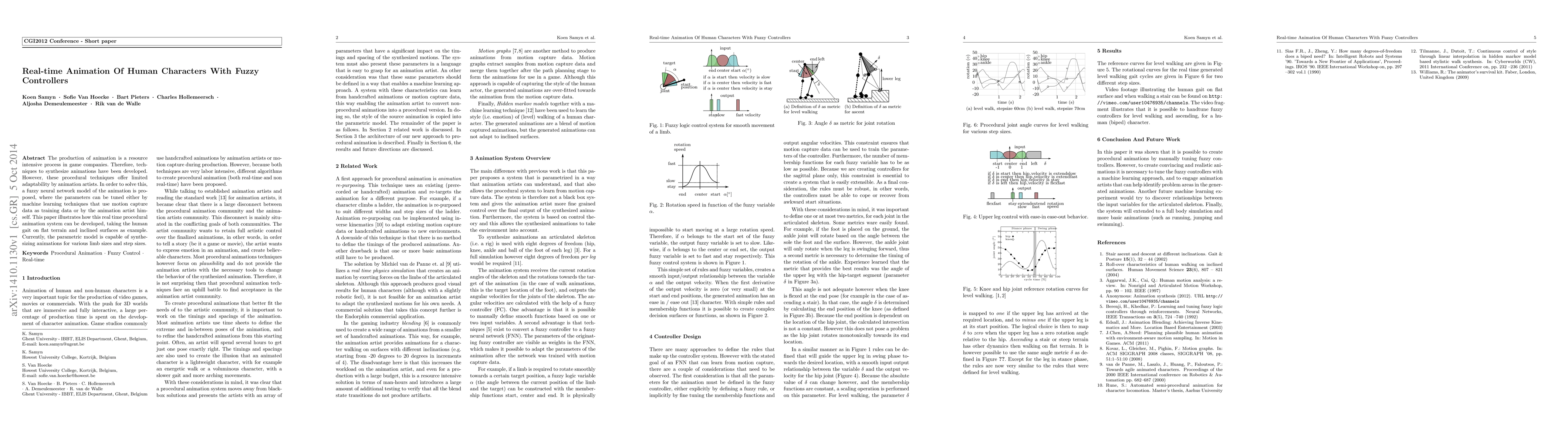 This paper proposes a fuzzy neural network model to enhance the adaptability of procedural animation in game production, allowing both machine learning and artists to fine-tune parameters using motion capture data. The system demonstrates real-time animation synthesis for human gait on different terrains, accommodating varying limb and step sizes.