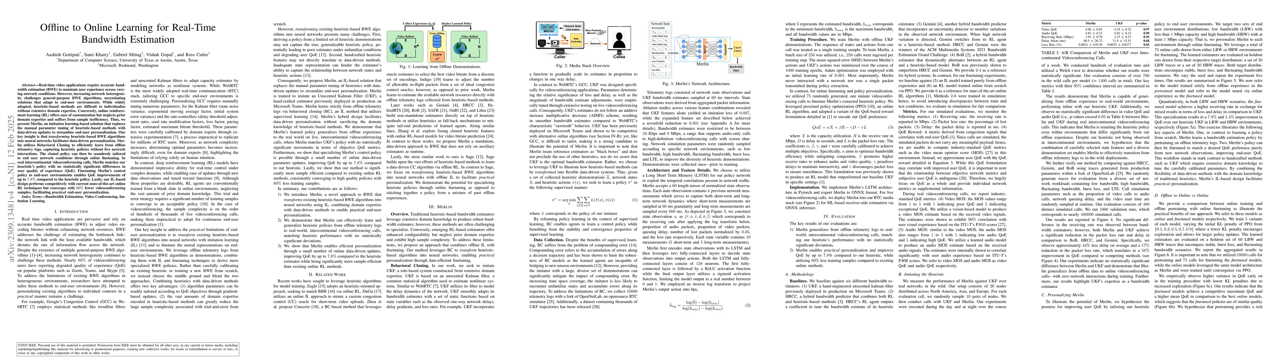 This paper proposes Merlin, an offline, data-driven bandwidth estimation method that combines heuristic-based and deep learning techniques to generalize to unseen network dynamics. Merlin outperforms existing methods and achieves significant reductions in packet loss and delay in real-world inter-continental video calls.