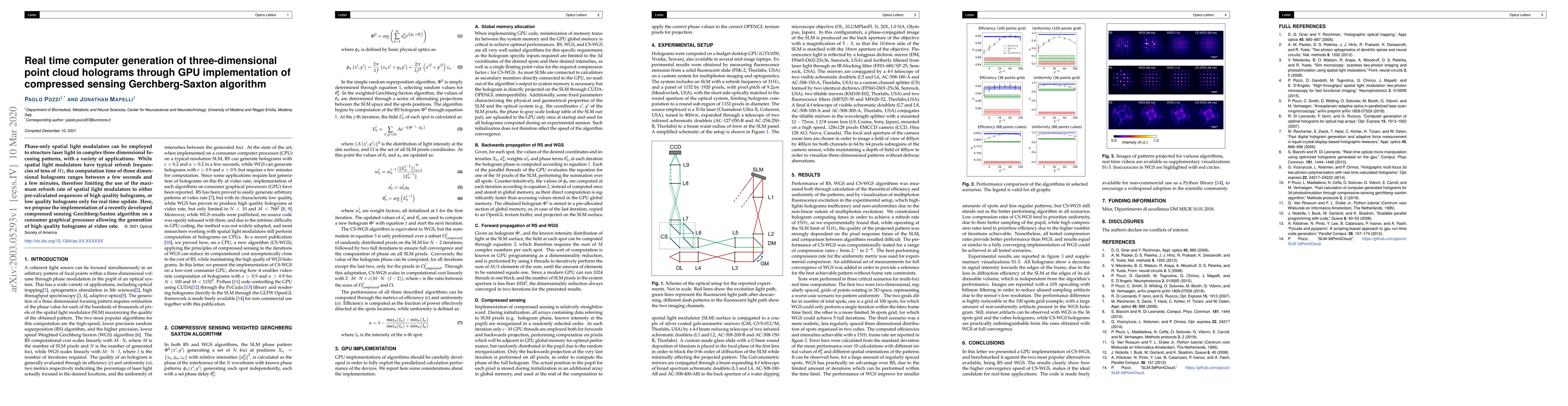 This paper proposes a GPU-based implementation of the compressed sensing Gerchberg-Saxton algorithm to generate high-quality three-dimensional point cloud holograms in real time, overcoming the limitations of traditional spatial light modulators' refresh rates. The approach enables high-quality hologram updates at video rates, expanding the potential applications of phase-only spatial light modulators.