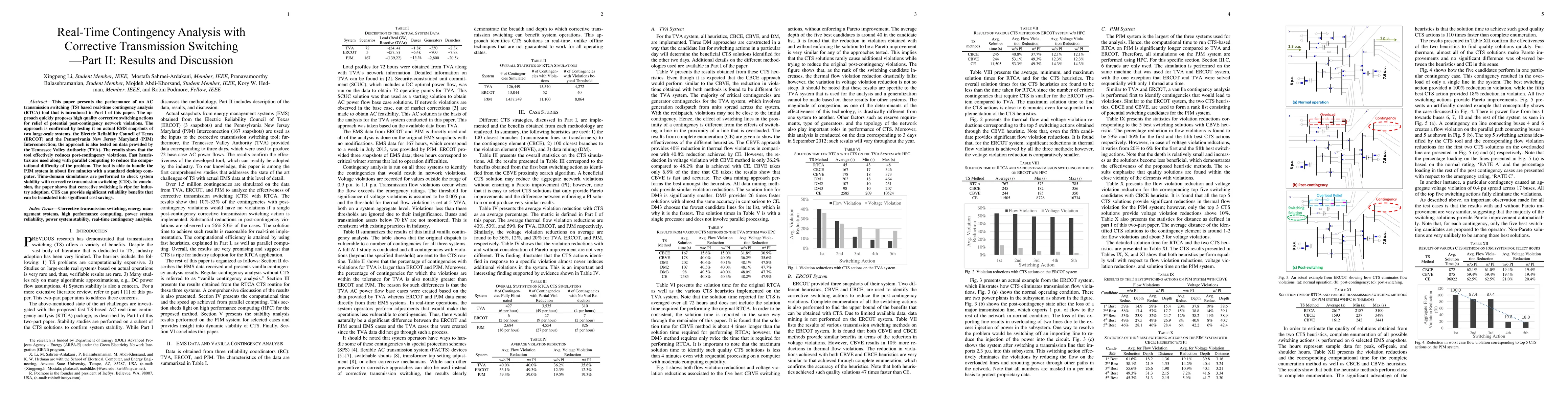 This paper presents the performance of an AC transmission switching (TS) based real-time contingency analysis (RTCA) tool that is introduced in Part I of this paper. The approach quickly proposes high quality corrective switching actions for relief of potential post-contingency network violations. The approach is confirmed by testing it on actual EMS snapshots of two large-scale systems, the Electric Reliability Council of Texas (ERCOT) and the Pennsylvania New Jersey Maryland (PJM) Interconnection; the approach is also tested on data provided by the Tennessee Valley Authority (TVA). The results show that the tool effectively reduces post-contingency violations. Fast heuristics are used along with parallel computing to reduce the computational difficulty of the problem. The tool is able to handle the PJM system in about five minutes with a standard desktop computer. Time-domain simulations are performed to check system stability with corrective transmission switching (CTS). In conclusion, the paper shows that corrective switching is ripe for industry adoption. CTS can provide significant reliability benefits that can be translated into significant cost savings.