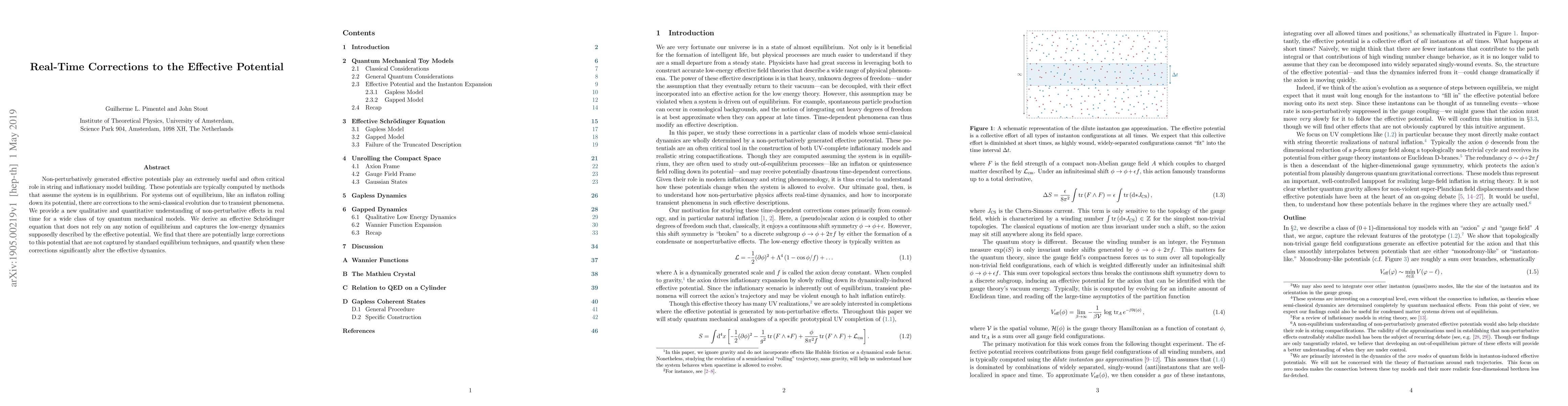 Non-perturbatively generated effective potentials play an extremely useful and often critical role in string and inflationary model building. These potentials are typically computed by methods that assume the system is in equilibrium. For systems out of equilibrium, like an inflaton rolling down its potential, there are corrections to the semi-classical evolution due to transient phenomena. We provide a new qualitative and quantitative understanding of non-perturbative effects in real time for a wide class of toy quantum mechanical models. We derive an effective Schr\"{o}dinger equation that does not rely on any notion of equilibrium and captures the low-energy dynamics supposedly described by the effective potential. We find that there are potentially large corrections to this potential that are not captured by standard equilibrium techniques, and quantify when these corrections significantly alter the effective dynamics.