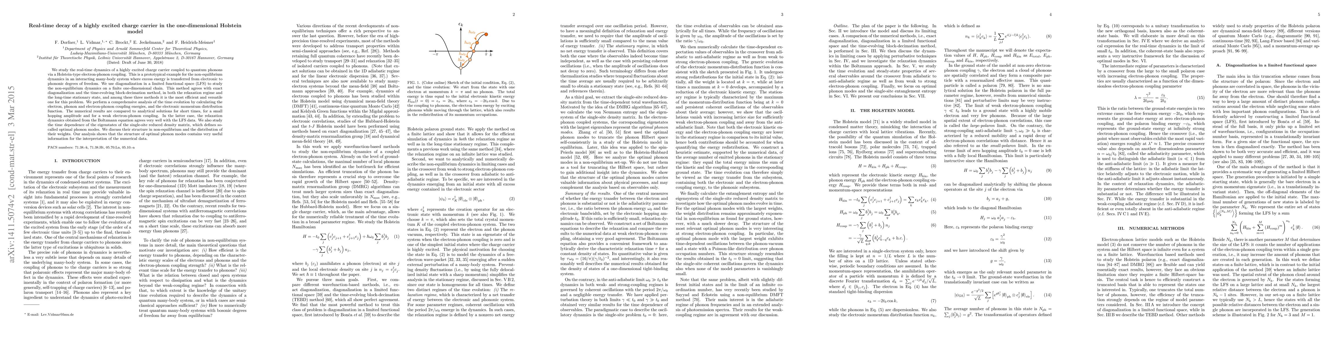 This paper investigates the real-time decay of a highly excited charge carrier in a one-dimensional Holstein model, using the limited functional space method to study non-equilibrium dynamics.