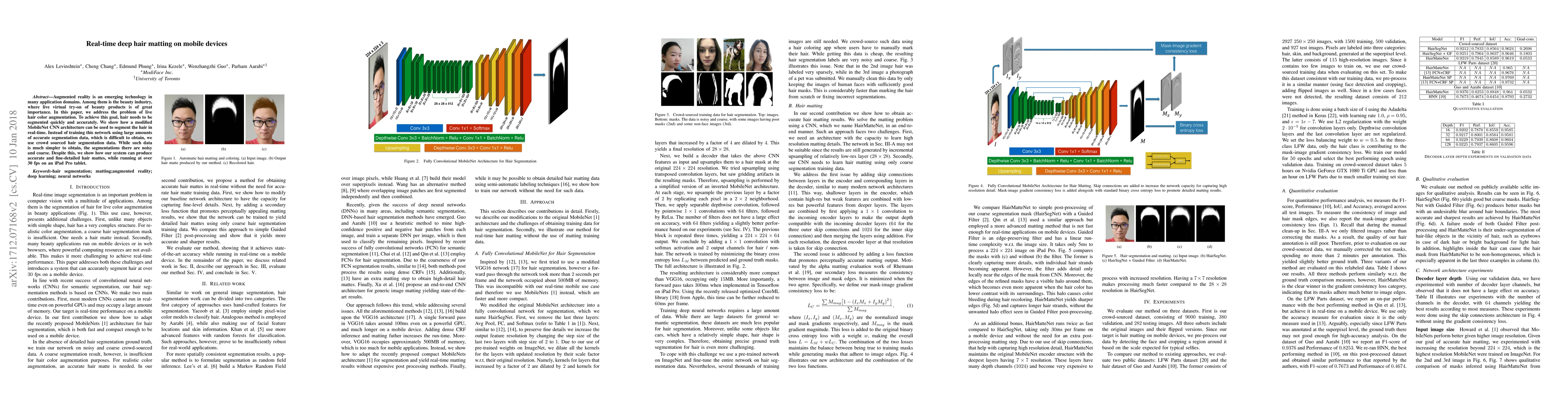 This paper proposes a real-time deep hair matting method for mobile devices using a modified MobileNet CNN to segment hair quickly and accurately from crowd-sourced, albeit noisy, data. The system achieves over 30 fps on an iPad Pro, enabling live hair color augmentation in augmented reality applications.