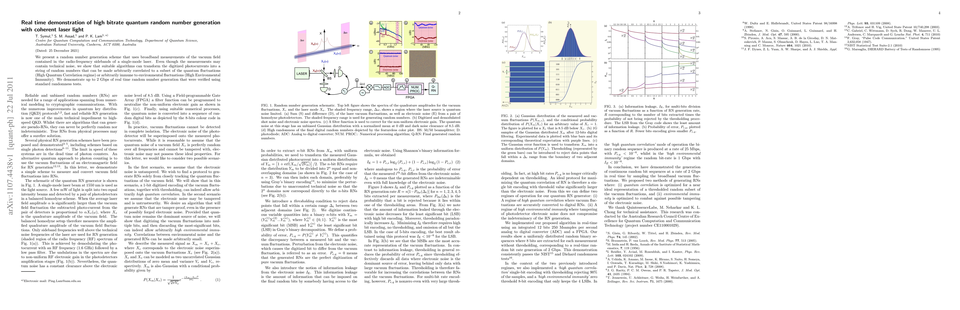 This paper demonstrates a high bitrate quantum random number generation scheme using coherent laser light, achieving up to 2 Gbps through broadband measurements of the vacuum field. The generated random numbers can be tailored to be highly correlated with quantum fluctuations or immune to environmental noise via suitable algorithms.