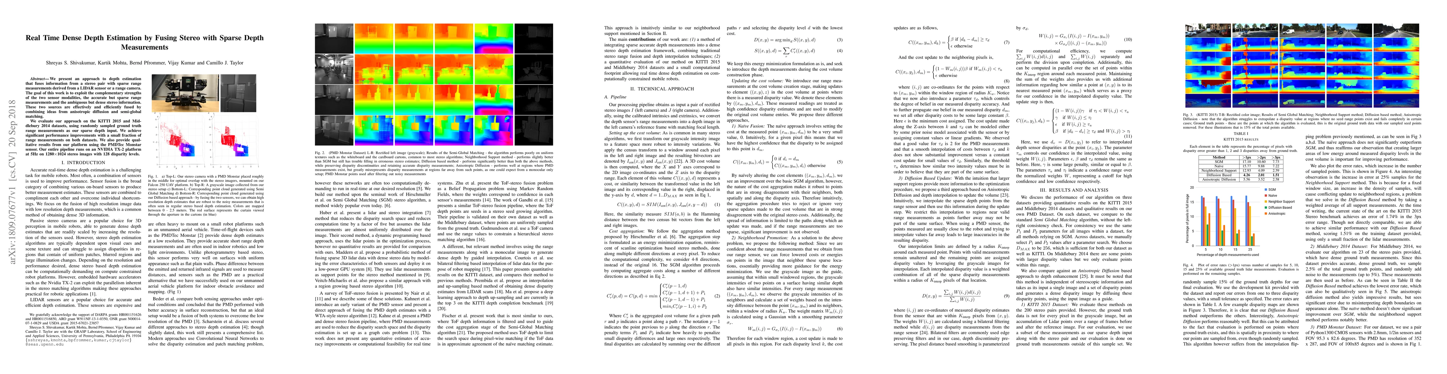 This work is significant as it explores the integration of sparse depth sensor measurements into dense stereo algorithms, improving depth estimation accuracy for real-time applications on computationally constrained mobile robots.