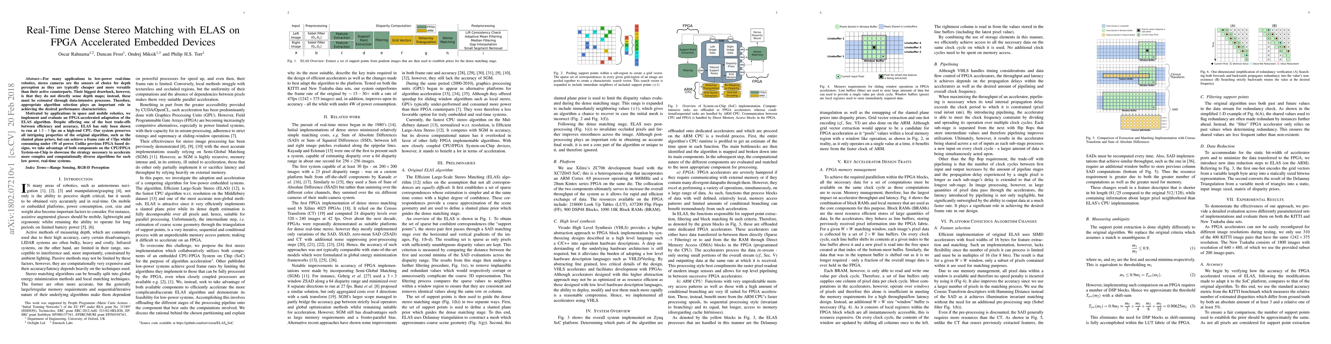 This paper presents an FPGA-accelerated implementation of the ELAS algorithm for real-time dense stereo matching, achieving 47fps at under 4W of power, significantly improving upon previous CPU-based implementations while maintaining accuracy and efficiency for low-power robotics applications.