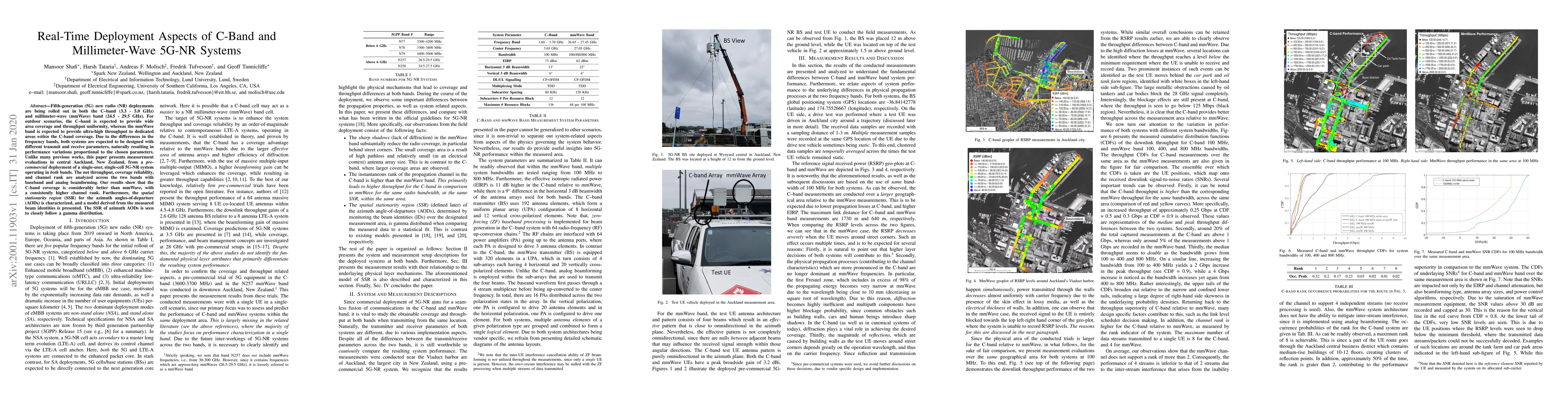 This paper evaluates the real-time deployment of 5G-NR systems in C-band and millimeter-wave bands in central Auckland, New Zealand. Results indicate superior coverage and higher channel rank for C-band compared to millimeter-wave, with a gamma distribution observed for the spatial stationarity region of azimuth angles-of-departure.