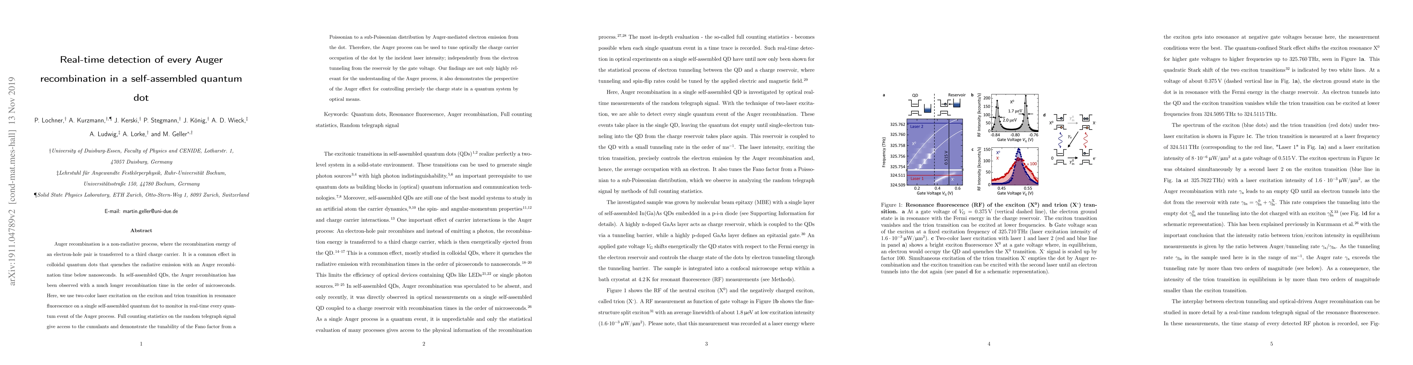 This study utilizes two-color laser excitation to real-time detect every Auger recombination event in a self-assembled quantum dot, showing that the process can tune the dot's charge carrier occupation optically, offering potential for precise quantum system control. The research reveals the tunability of the Fano factor and the Auger effect's role in charge state management.