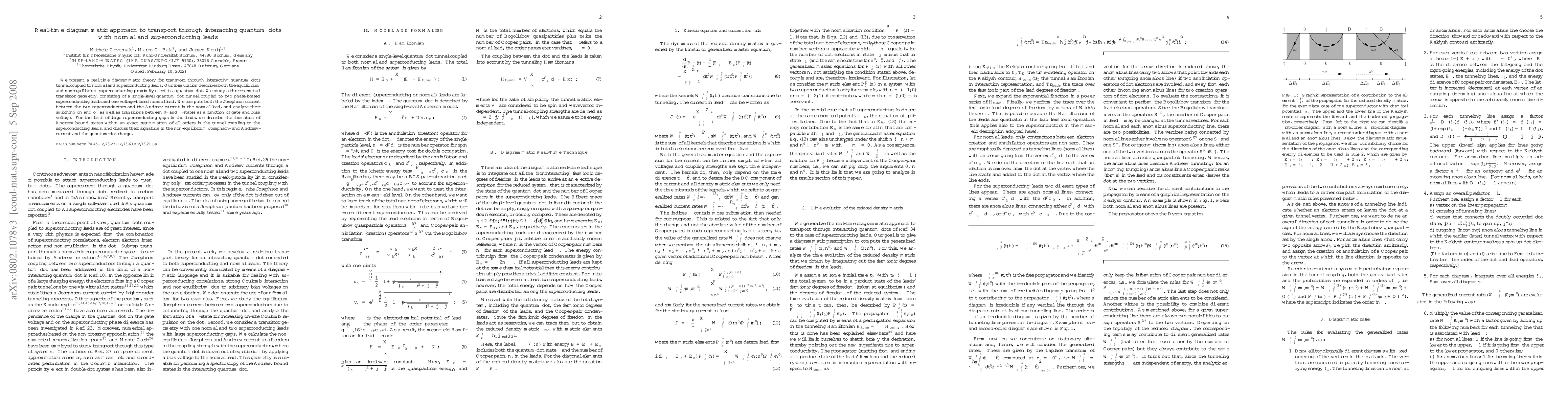 This paper develops a real-time diagrammatic theory for transport through interacting quantum dots connected to normal and superconducting leads, focusing on equilibrium and non-equilibrium effects. It analyzes a three-terminal transistor setup, computing Josephson and Andreev currents, and explores their behavior under varying gate and bias voltages, including transitions between 0- and $\pi$-states.