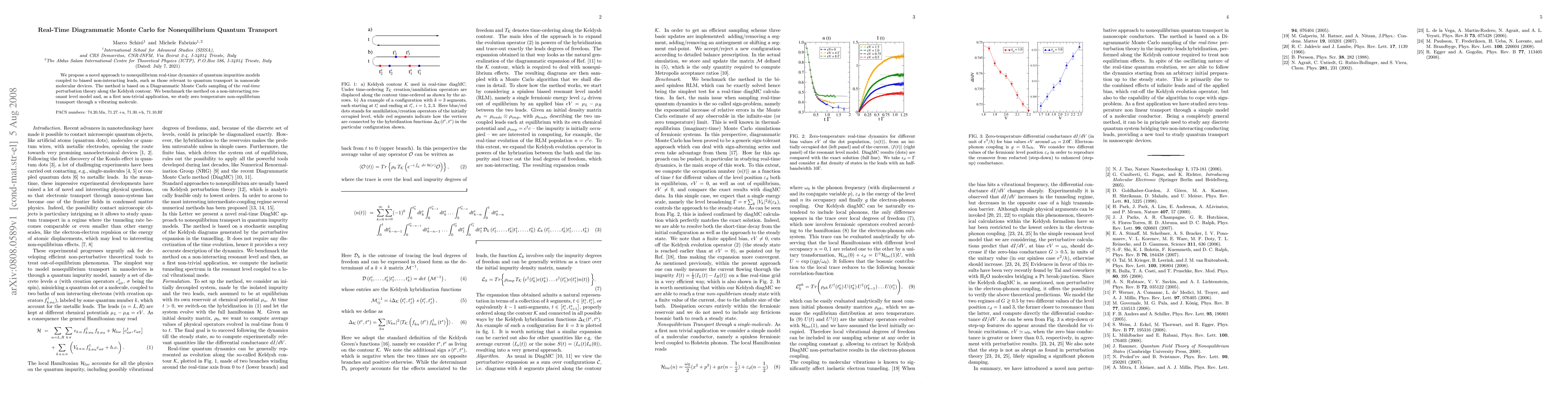 This paper introduces a Diagrammatic Monte Carlo method for real-time dynamics of quantum impurities in nonequilibrium transport scenarios, benchmarking it on a resonant level model and applying it to study non-equilibrium transport through a vibrating molecule at zero temperature.
