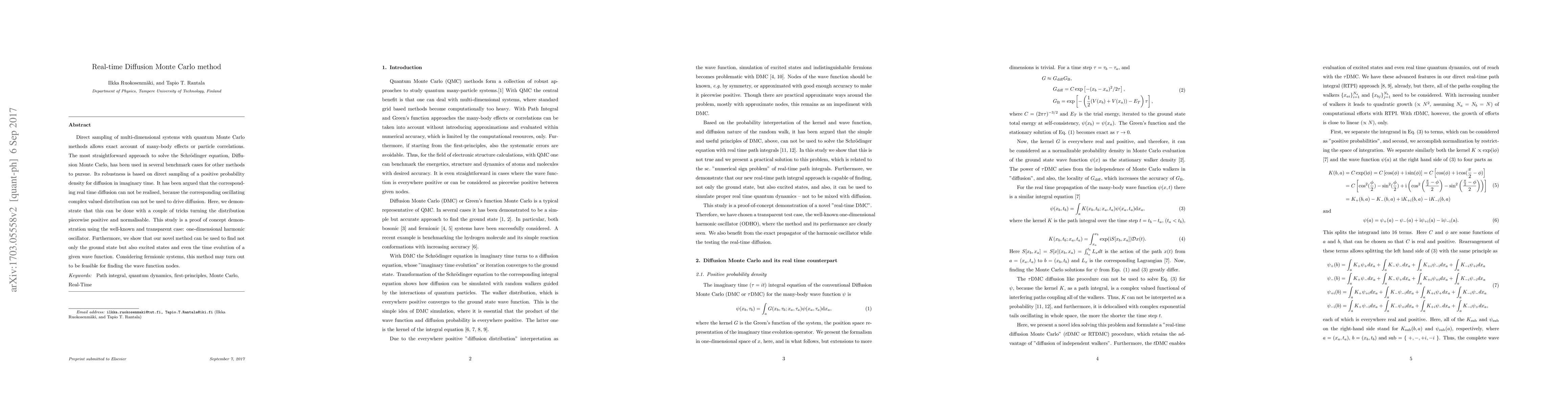 This paper introduces a real-time Diffusion Monte Carlo method, demonstrating its feasibility through a one-dimensional harmonic oscillator. The method allows for exact sampling of quantum systems, enabling the determination of ground and excited states, and the time evolution of wave functions.