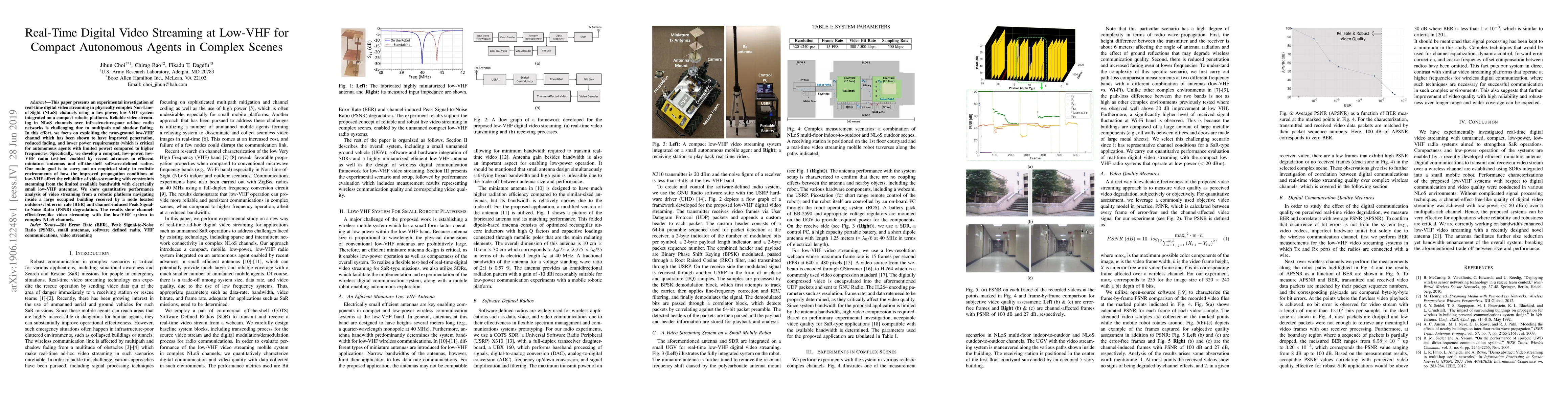 This paper investigates real-time digital video streaming in complex, Non-Line-Of-Sight (NLoS) environments using a low-power, low-VHF system integrated on a compact robotic platform. The study demonstrates improved reliability and reduced fading in low-VHF channels compared to higher frequencies, achieving effective video streaming in challenging environments.