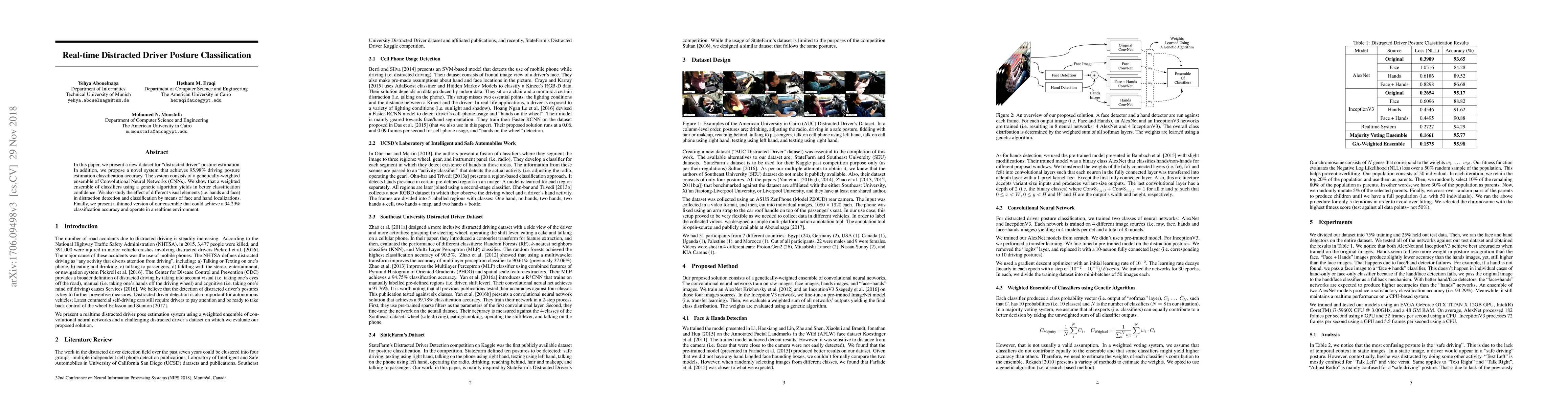 Researchers developed a system that accurately classifies distracted driver posture with 95.98% accuracy, using a genetically-weighted ensemble of Convolutional Neural Networks. A thinned version of the system can achieve 94.29% accuracy in real-time environments.