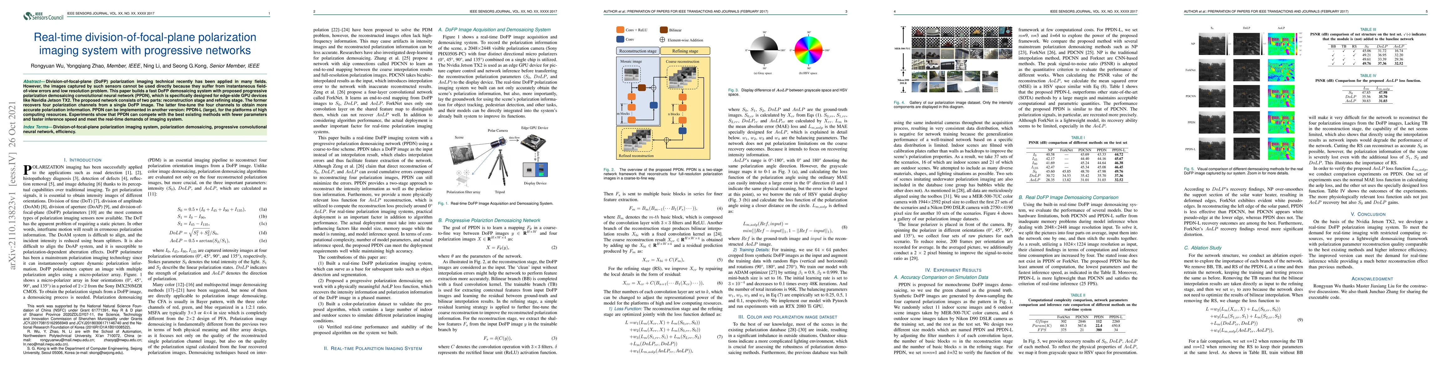 This paper proposes a real-time division-of-focal-plane polarization imaging system using a progressive polarization demosaicing convolutional neural network (PPDN) designed for edge devices. The PPDN consists of a reconstruction and refining stage for accurate polarization information, outperforming existing methods with fewer parameters and faster inference speeds.