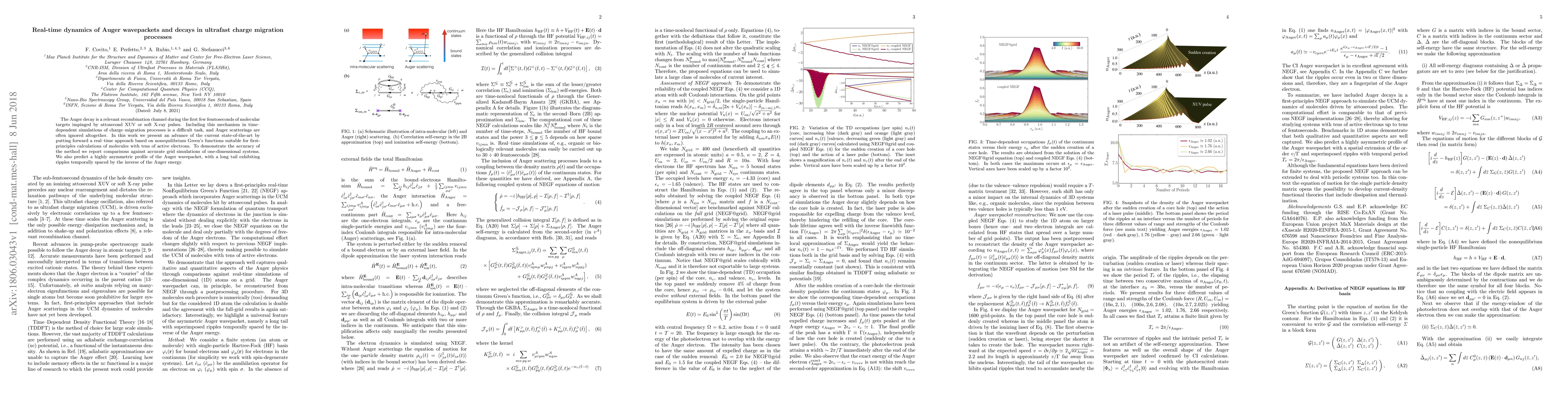 The Auger decay is a relevant recombination channel during the first few femtoseconds of molecular targets impinged by attosecond XUV or soft X-ray pulses. Including this mechanism in time--dependent simulations of charge--migration processes is a difficult task, and Auger scatterings are often ignored altogether. In this work we present an advance of the current state-of-the-art by putting forward a real--time approach based on nonequilibrium Green's functions suitable for first-principles calculations of molecules with tens of active electrons. To demonstrate the accuracy of the method we report comparisons against accurate grid simulations of one-dimensional systems. We also predict a highly asymmetric profile of the Auger wavepacket, with a long tail exhibiting ripples temporally spaced by the inverse of the Auger energy.