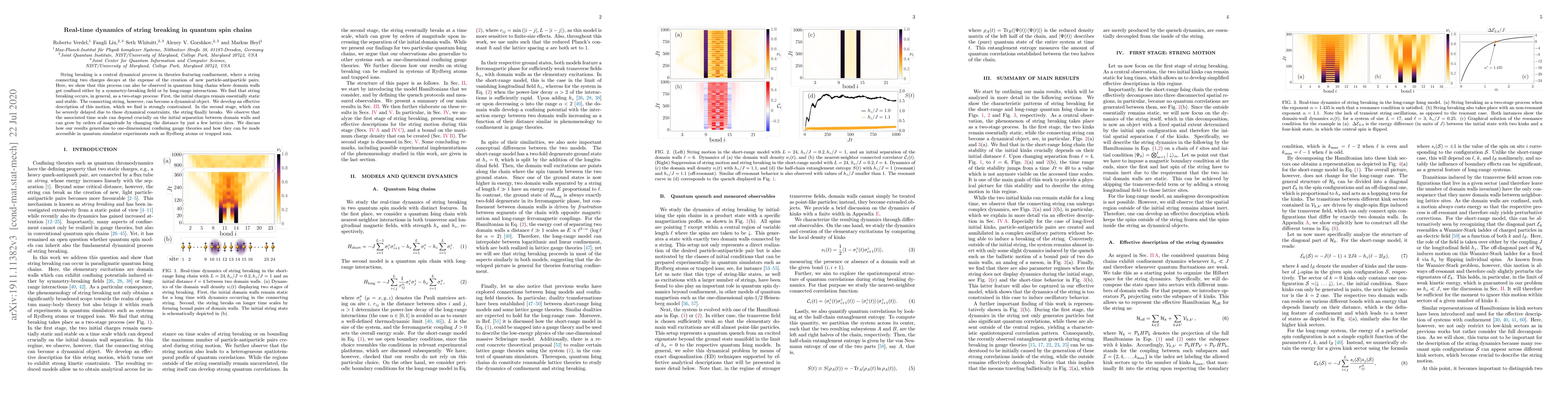This research demonstrates that string breaking, a confinement process in particle theories, also occurs in quantum Ising chains. The process unfolds in two stages: initial stability followed by eventual string breakage, with the time scale dependent on the initial separation between domain walls. The findings have implications for understanding confining gauge theories and can be tested in quantum simulator experiments.