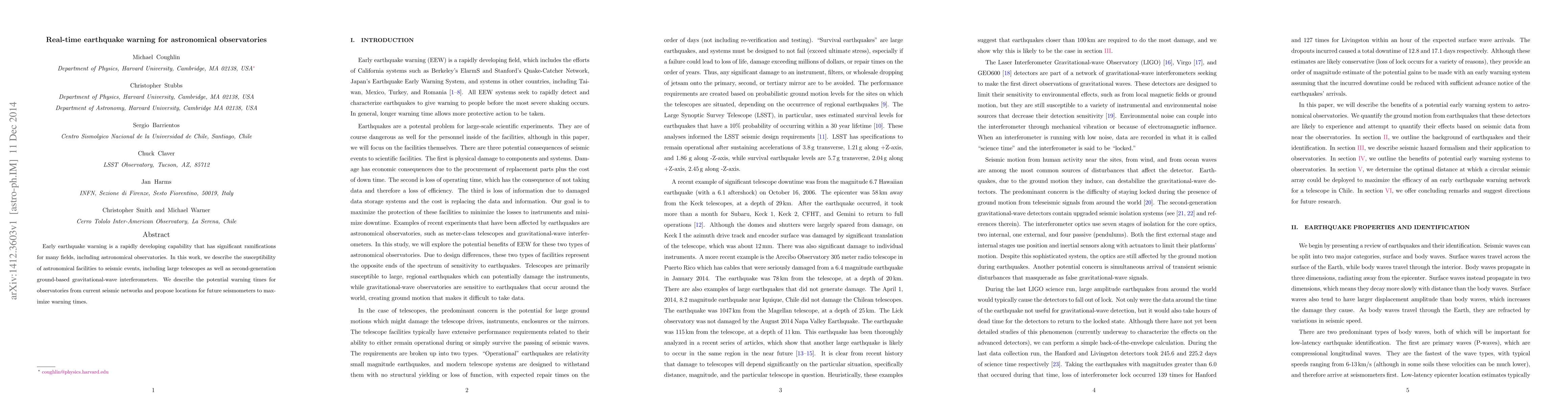The paper presents a methodology for optimizing seismic networks to maximize early warning times for astronomical observatories, considering both shallow and intermediate-depth earthquakes.