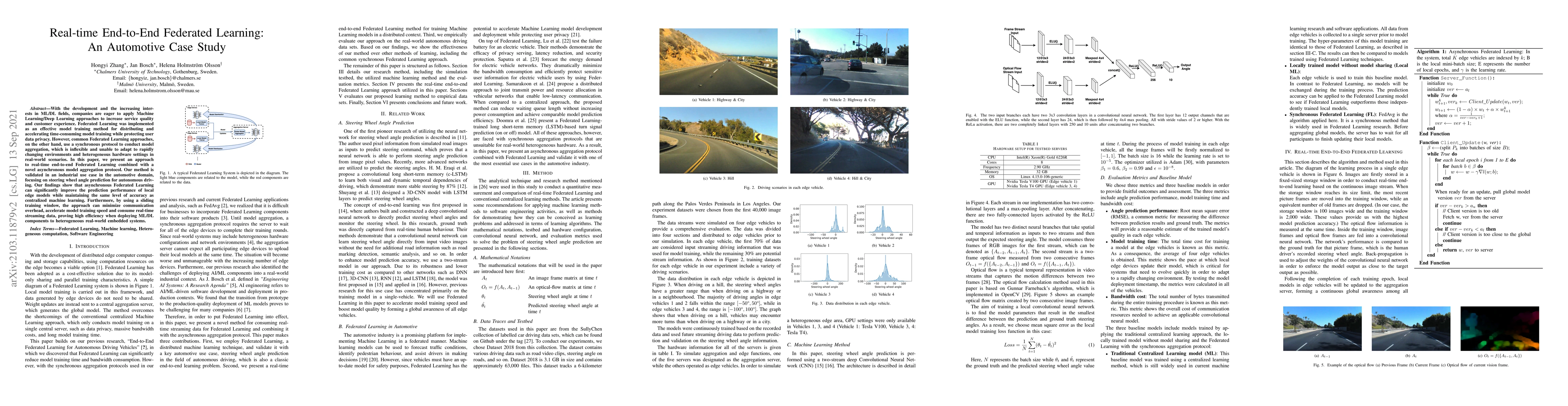 This paper proposes an asynchronous real-time end-to-end Federated Learning approach for automotive applications, specifically steering wheel angle prediction. The method demonstrates improved local model performance and efficiency, while maintaining data privacy and minimizing communication overhead.