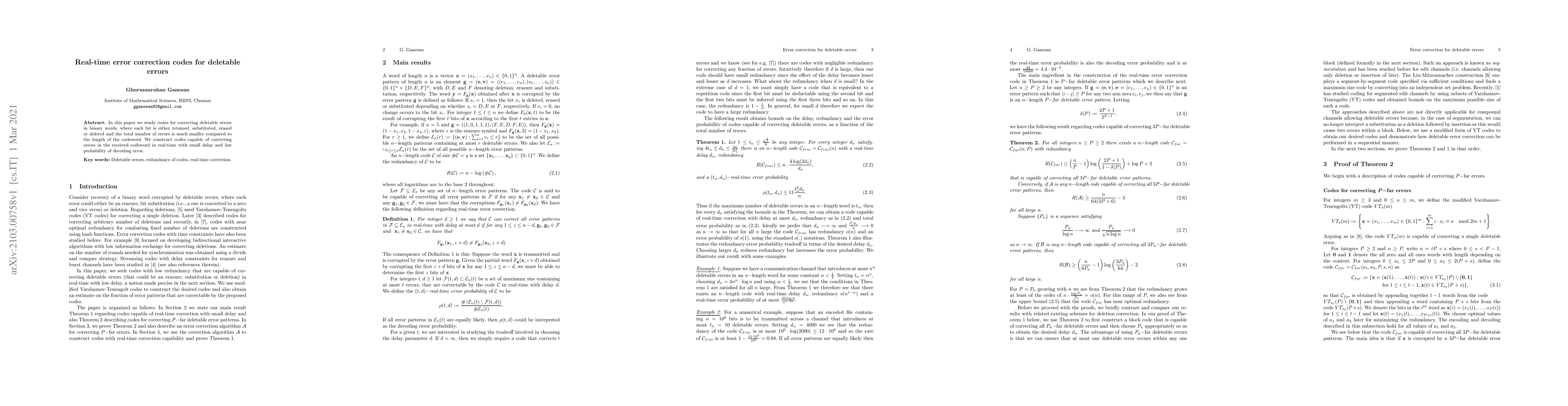 The research focuses on designing efficient codes to correct deletable errors, improving data reliability and security in applications where data loss is a concern.