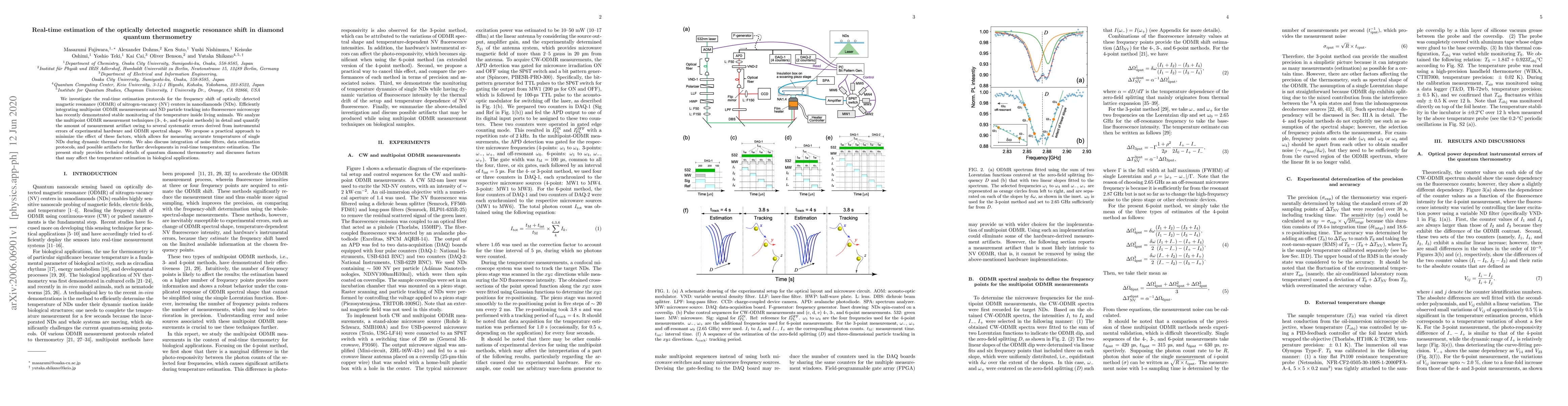 We investigate the real-time estimation protocols for the frequency shift of optically detected magnetic resonance (ODMR) of nitrogen-vacancy (NV) centers in nanodiamonds (NDs). Efficiently integrating multipoint ODMR measurements and ND particle tracking into fluorescence microscopy has recently demonstrated stable monitoring of the temperature inside living animals. We analyze the multipoint ODMR measurement techniques (3-, 4-, and 6-point methods) in detail and quantify the amount of measurement artifact owing to several systematic errors derived from instrumental errors of experimental hardware and ODMR spectral shape. We propose a practical approach to minimize the effect of these factors, which allows for measuring accurate temperatures of single NDs during dynamic thermal events. We also discuss integration of noise filters, data estimation protocols, and possible artifacts for further developments in real-time temperature estimation. The present study provides technical details of quantum diamond thermometry and discusses factors that may affect the temperature estimation in biological applications.