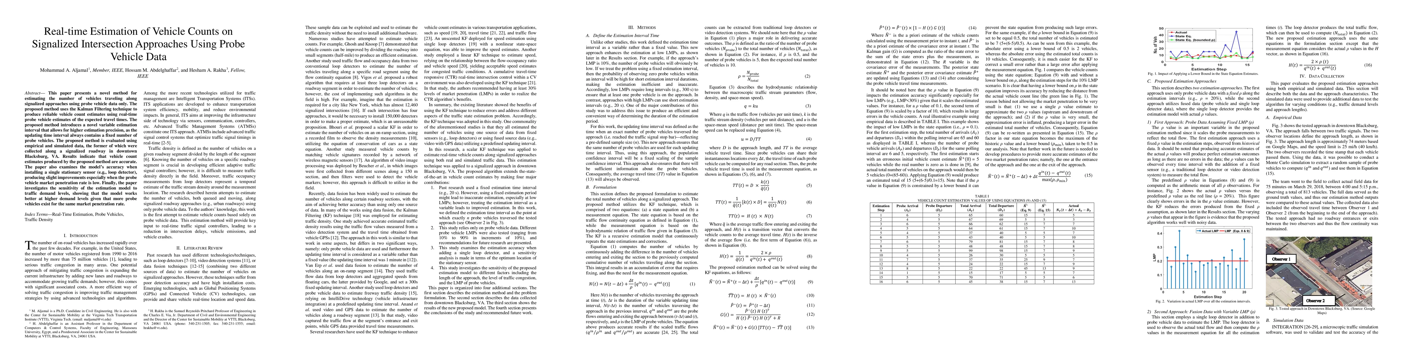 This paper introduces a Kalman Filtering-based method for real-time vehicle count estimation at signalized intersections using probe vehicle data, achieving higher precision with a novel variable estimation interval. The method is validated with empirical data from Blacksburg, VA, demonstrating accuracy and slight improvements when combined with stationary sensors.