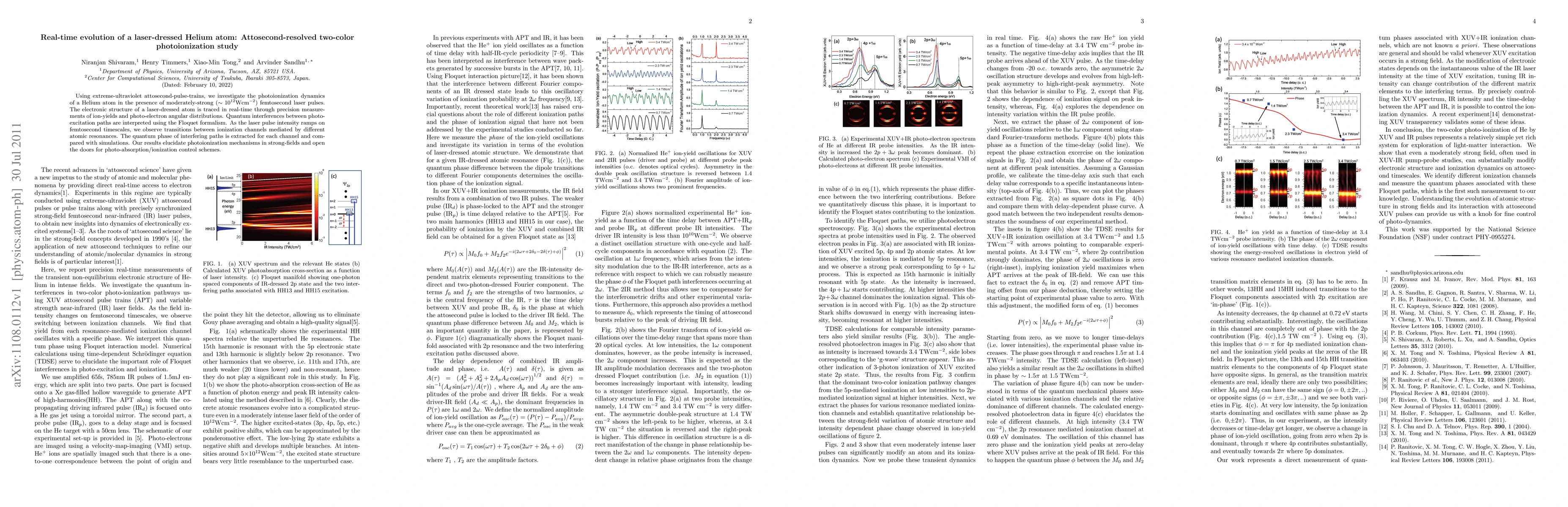Using extreme-ultraviolet attosecond-pulse-trains, we investigate the photoionization dynamics of a Helium atom in the presence of moderately-strong (~10^12 W/cm^2) femtosecond laser pulses. The electronic structure of a laser-dressed atom is traced in real-time through precision measurements of ion-yields and photo-electron angular distributions. Quantum interferences between photo-excitation paths are interpreted using the Floquet formalism. As the laser pulse intensity ramps on femtosecond timescales, we observe transitions between ionization channels mediated by different atomic resonances. The quantum phase of interfering paths is extracted for each channel and compared with simulations. Our results elucidate photoionization mechanisms in strong-fields and open the doors for photo-absorption/ionization control schemes.