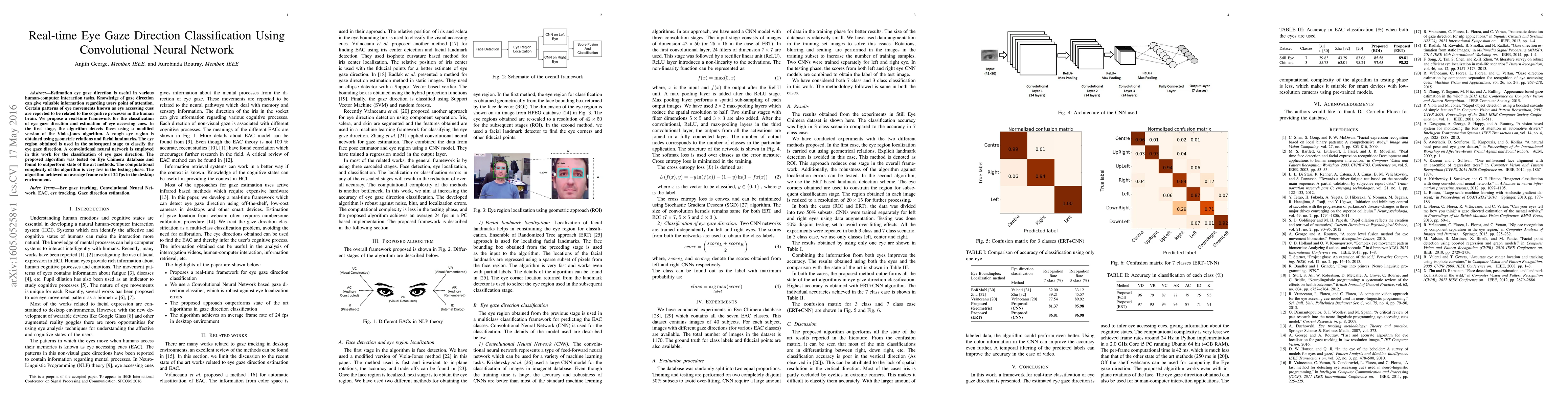 This paper proposes a real-time framework using a convolutional neural network to classify eye gaze direction and estimate eye accessing cues, achieving high accuracy and low computational complexity, with an average frame rate of 24 fps. The method involves face detection, eye region extraction, and gaze classification, outperforming existing state-of-the-art methods on the Eye Chimera database.