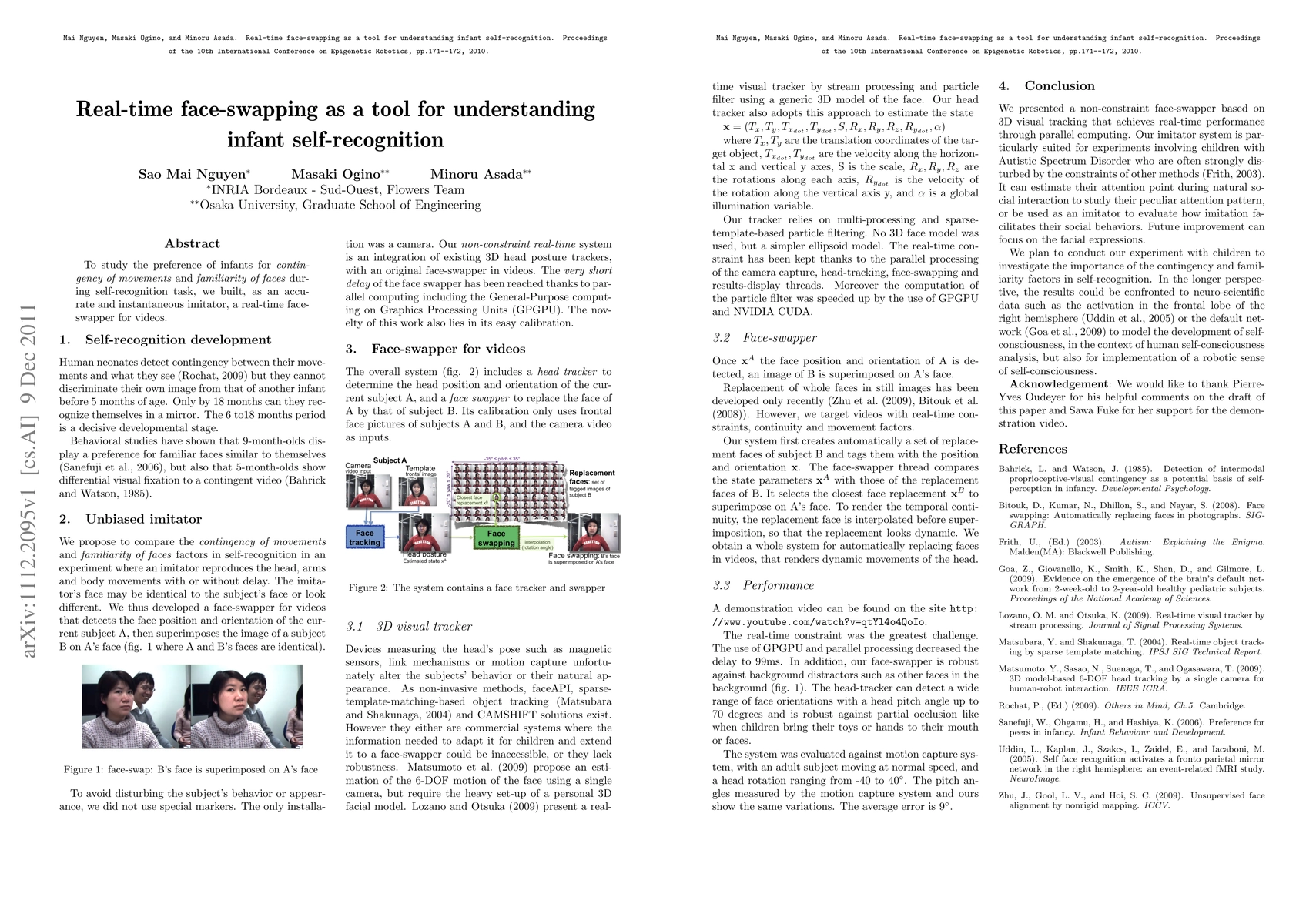 To study the preference of infants for contingency of movements and familiarity of faces during self-recognition task, we built, as an accurate and instantaneous imitator, a real-time face- swapper for videos. We present a non-constraint face-swapper based on 3D visual tracking that achieves real-time performance through parallel computing. Our imitator system is par- ticularly suited for experiments involving children with Autistic Spectrum Disorder who are often strongly disturbed by the constraints of other methods.