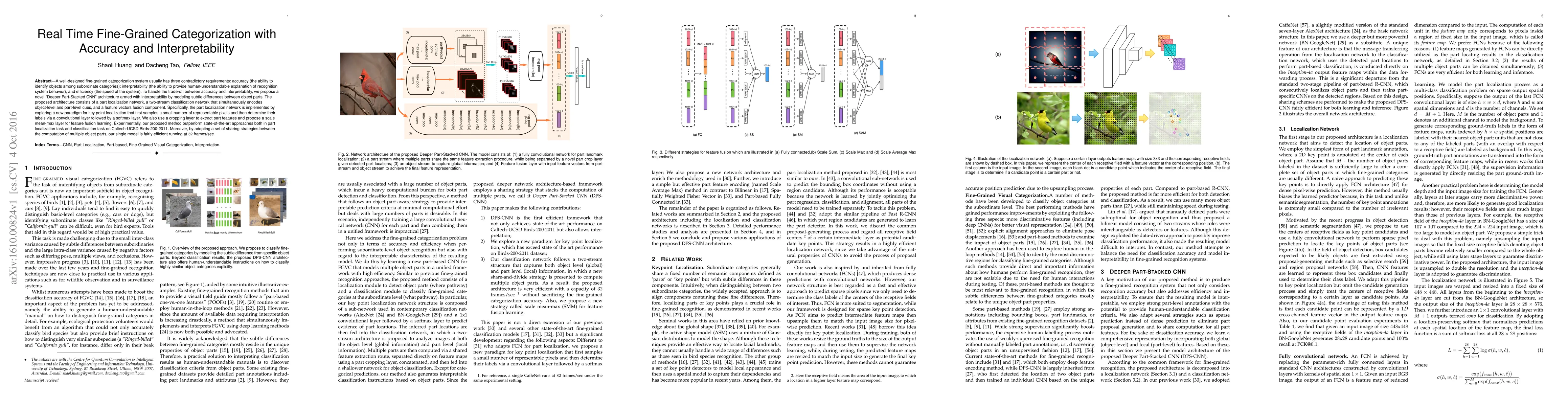 This paper proposes a "Deeper Part-Stacked CNN" architecture for real-time fine-grained categorization, balancing accuracy, interpretability, and efficiency. The model uses a part localization network and a two-stream classification network to model subtle differences between object parts, achieving state-of-the-art performance on the Caltech-UCSD Birds dataset while maintaining efficiency.