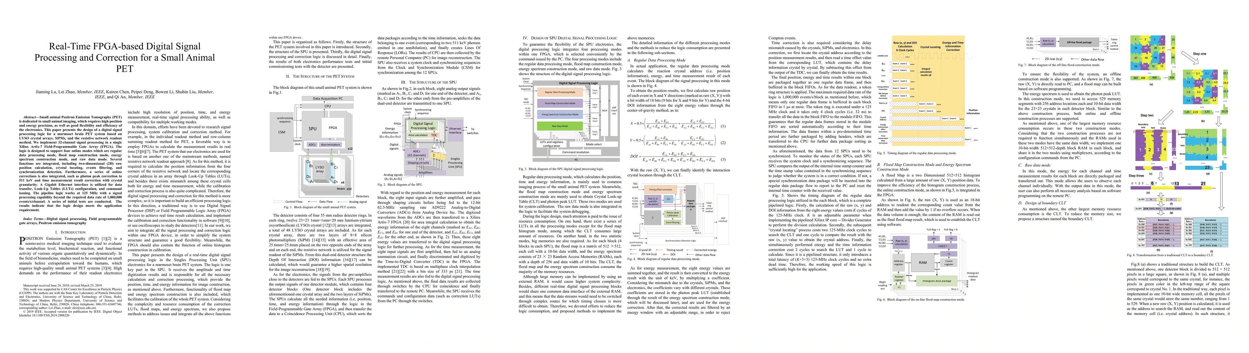 This paper designs a digital signal processing logic for a small animal PET system using a Xilinx Artix-7 FPGA, implementing 32-channel processing and integrating functions like position calculation and event filtering, achieving a data rate exceeding 1,000,000 events/s/channel. Initial tests confirm the logic design meets application requirements.