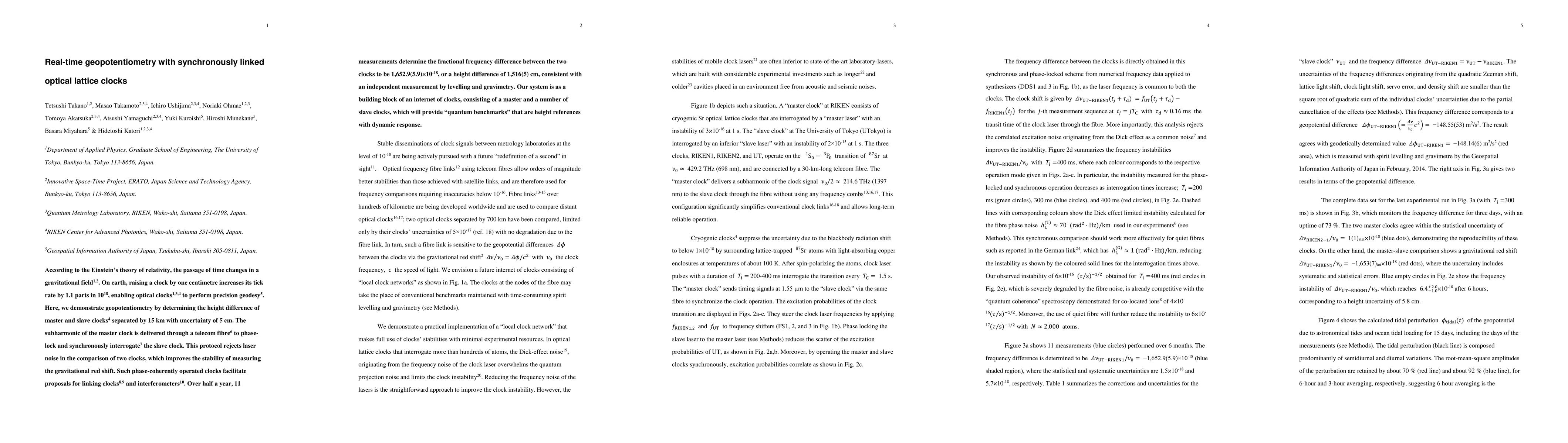 This paper demonstrates geopotentiometry using optical lattice clocks to measure height differences with high precision, achieving a 5 cm uncertainty over 15 km. The method employs phase-coherent synchronization to reject laser noise and accurately determine gravitational redshift, validating the results with independent measurements.