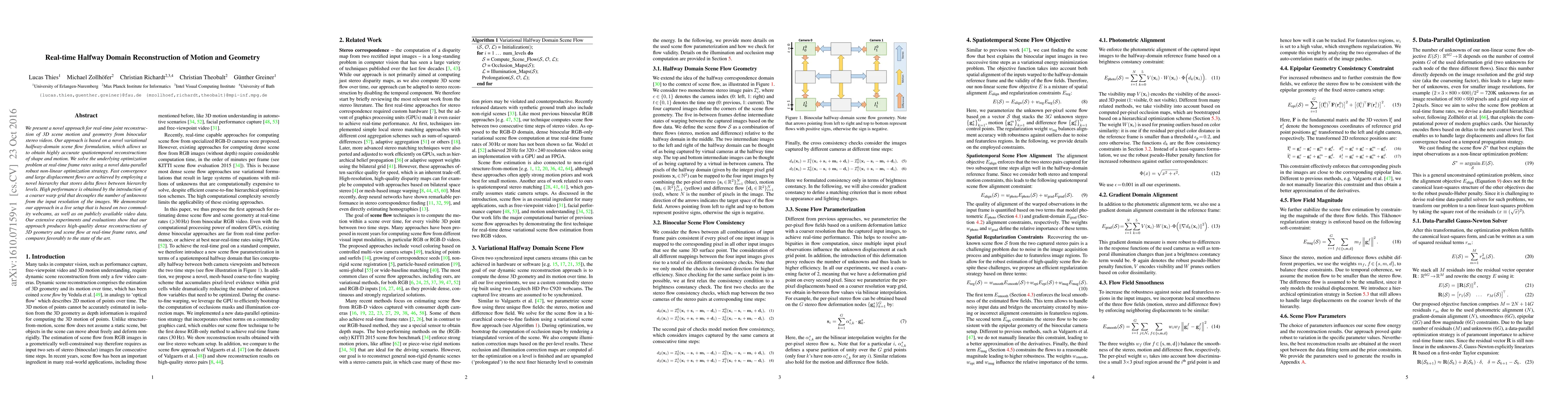 Researchers developed a real-time method for reconstructing 3D scene motion and geometry from binocular stereo videos with high accuracy and speed. Their approach produces dense reconstructions at real-time frame rates, outperforming existing methods.