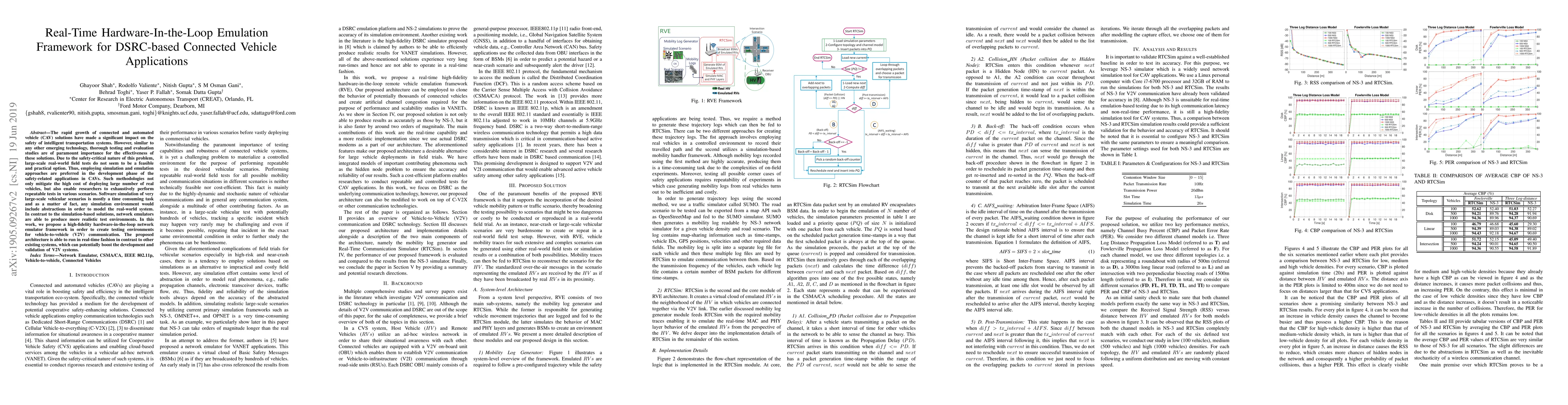 This paper proposes a real-time hardware-in-the-loop emulation framework for testing DSRC-based connected vehicle applications, emphasizing its high-fidelity and real-time capabilities over traditional simulation methods to enhance the development and validation of vehicle-to-vehicle communication systems.