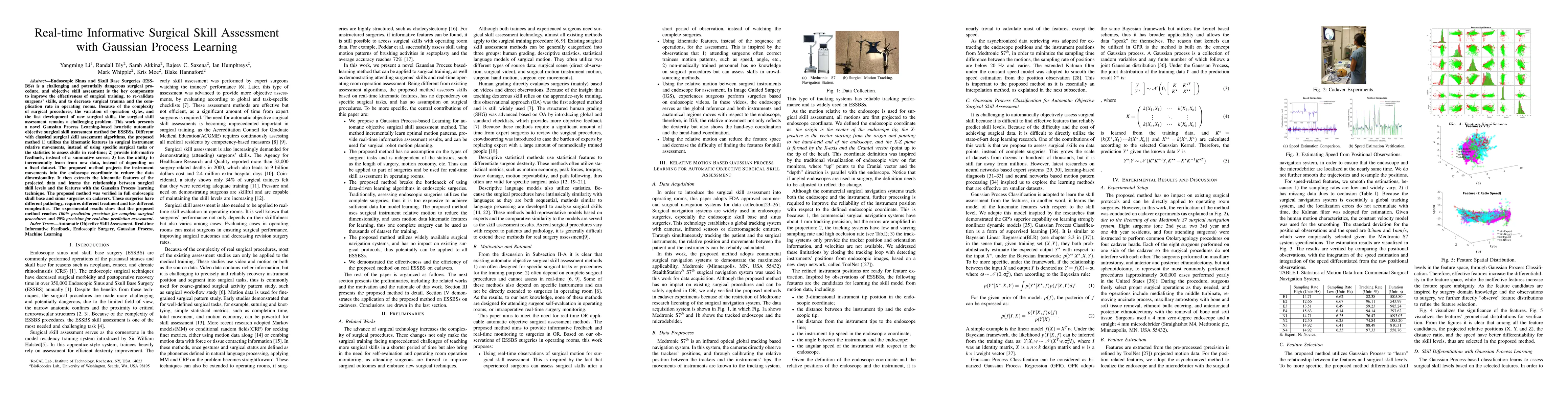 This paper introduces a novel Gaussian Process Learning-based method for real-time, objective assessment of surgical skills during Endoscopic Sinus and Skull Base Surgeries (ESSBSs). It uses kinematic features of instrument movements for real-time feedback and incrementally learns from new data, achieving 100% precision for complete procedures and 90% for real-time assessments.