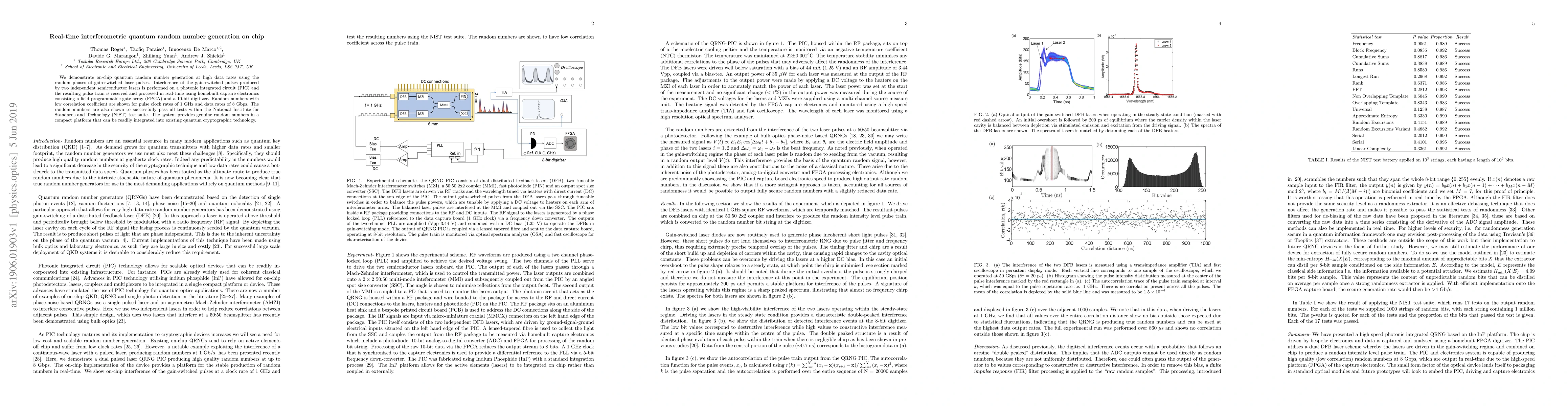 This paper presents a compact on-chip quantum random number generator using the interference of gain-switched laser pulses, achieving high data rates of 8 Gbps and passing NIST tests, demonstrating its potential for integration into quantum cryptographic systems.