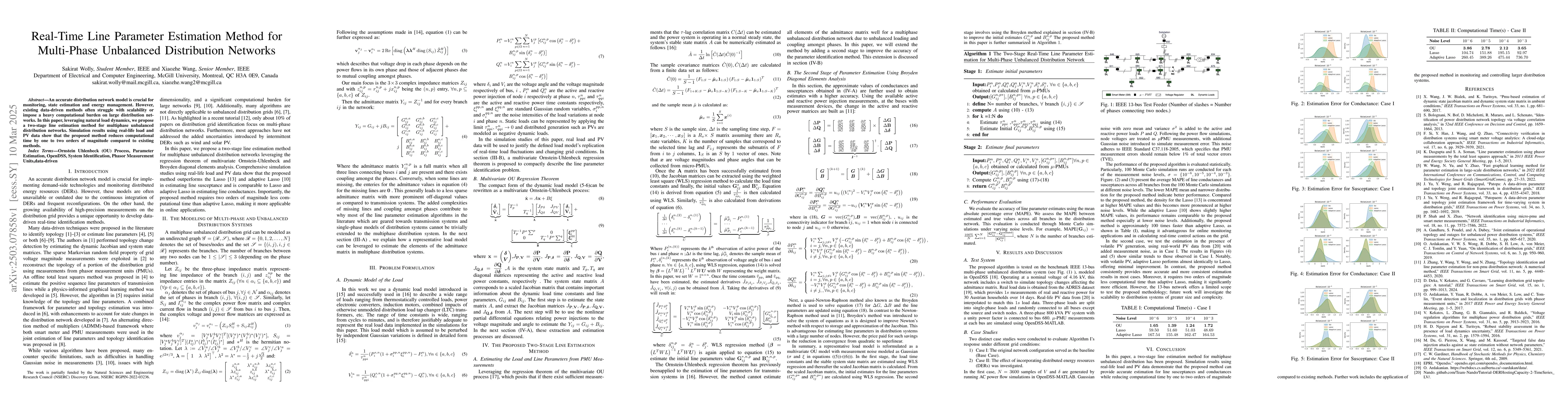 The paper proposes a two-stage line parameter estimation method for multi-phase unbalanced distribution networks, leveraging natural load dynamics and a dynamic load model represented as a multivariate Ornstein-Uhlenbeck process.