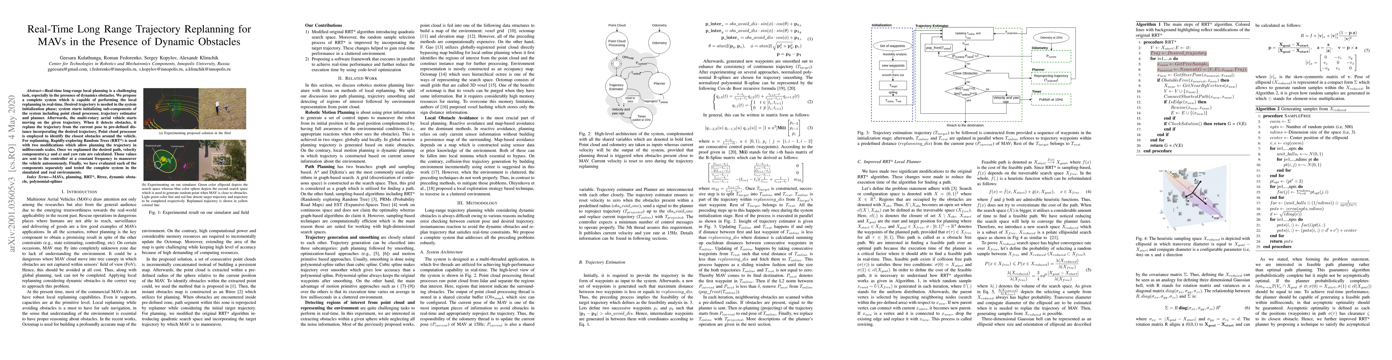 Real-time long-range local planning is a challenging task, especially in the presence of dynamics obstacles. We propose a complete system which is capable of performing the local replanning in real-time. Desired trajectory is needed in the system initialization phase; system starts initializing sub-components of the system including point cloud processor, trajectory estimator and planner. Afterwards, the multi-rotary aerial vehicle starts moving on the given trajectory. When it detects obstacles, it replans the trajectory from the current pose to pre-defined distance incorporating the desired trajectory. Point cloud processor is employed to identify the closest obstacles around the vehicle. For replanning, Rapidly-exploring Random Trees (RRT*) is used with two modifications which allow planning the trajectory in milliseconds scales. Once we replanned the desired path, velocity components(x,y and z) and yaw rate are calculated. Those values are sent to the controller at a constant frequency to maneuver the vehicle autonomously. Finally, we have evaluated each of the components separately and tested the complete system in the simulated and real environments.
