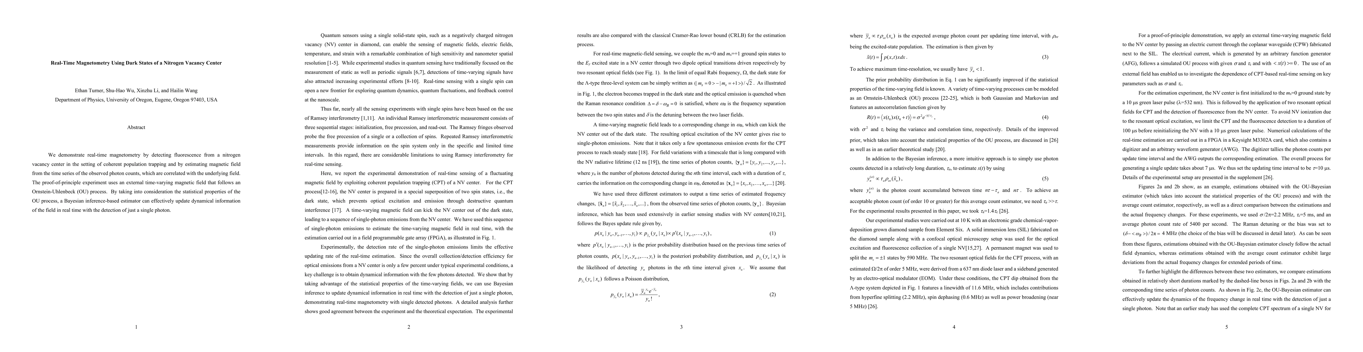 We demonstrate real-time magnetometry by detecting fluorescence from a nitrogen vacancy center in the setting of coherent population trapping and by estimating magnetic field from the time series of the observed photon counts, which are correlated with the underlying field. The proof-of-principle experiment uses an external time-varying magnetic field that follows an Ornstein-Uhlenbeck (OU) process. By taking into consideration the statistical properties of the OU process, a Bayesian inference-based estimator can effectively update dynamical information of the field in real time with the detection of just a single photon.